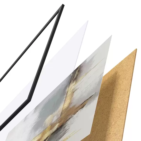 Plakatą sudaro rėmas, pleksiklas, atspausdintas vaizdas ir medžio drožlių plokštės pagrindas. Plakatą galima iš karto pakabinti ant sienos dėl kitoje pusėje esančių laikiklių.