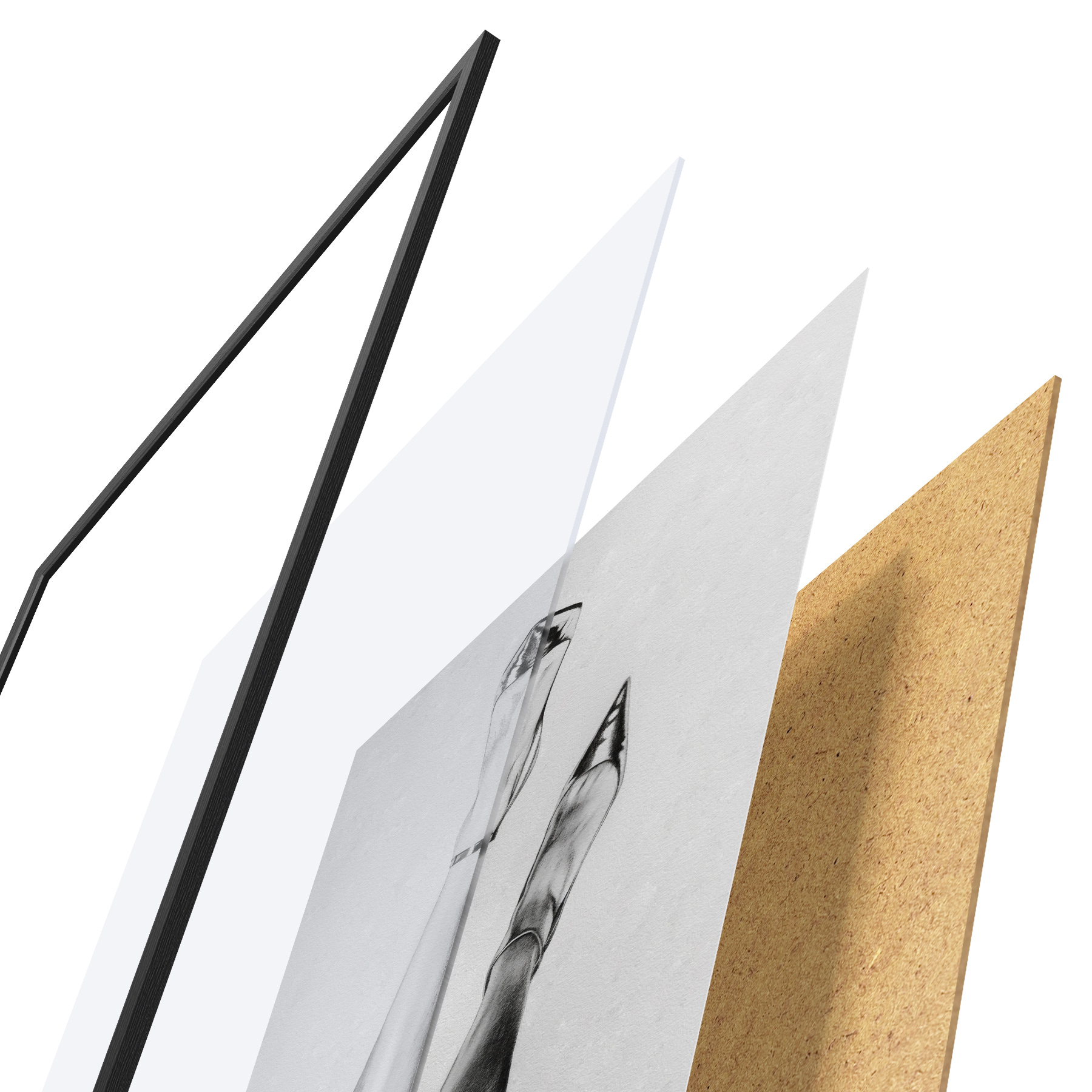 Plakatą sudaro rėmas, pleksiklas, atspausdintas vaizdas ir medžio drožlių plokštės pagrindas. Plakatą galima iš karto pakabinti ant sienos dėl kitoje pusėje esančių laikiklių.