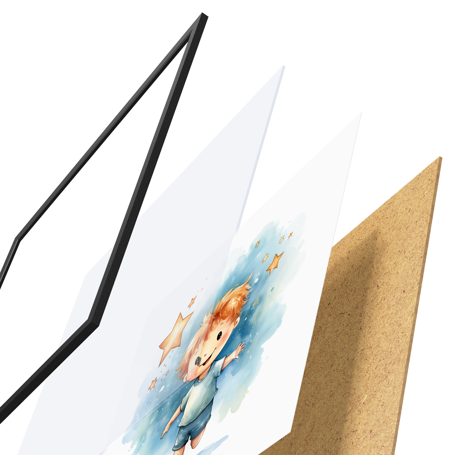 Plakatą sudaro rėmas, pleksiklas, atspausdintas vaizdas ir medžio drožlių plokštės pagrindas. Plakatą galima iš karto pakabinti ant sienos dėl kitoje pusėje esančių laikiklių.