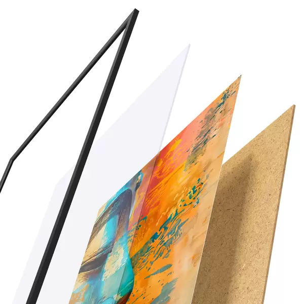Plakatą sudaro rėmas, pleksiklas, atspausdintas vaizdas ir medžio drožlių plokštės pagrindas. Plakatą galima iš karto pakabinti ant sienos dėl kitoje pusėje esančių laikiklių.