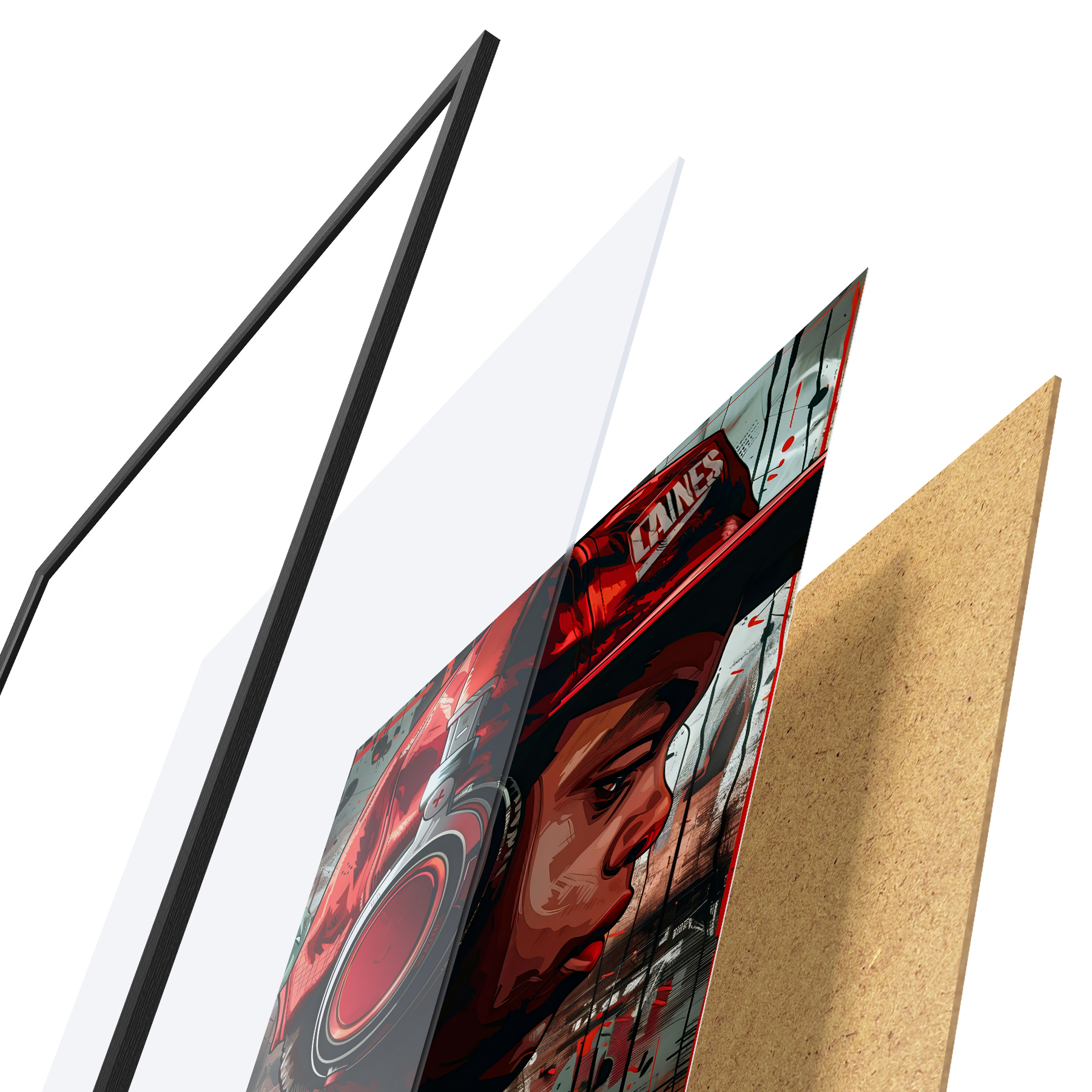 Plakatą sudaro rėmas, pleksiklas, atspausdintas vaizdas ir medžio drožlių plokštės pagrindas. Plakatą galima iš karto pakabinti ant sienos dėl kitoje pusėje esančių laikiklių.