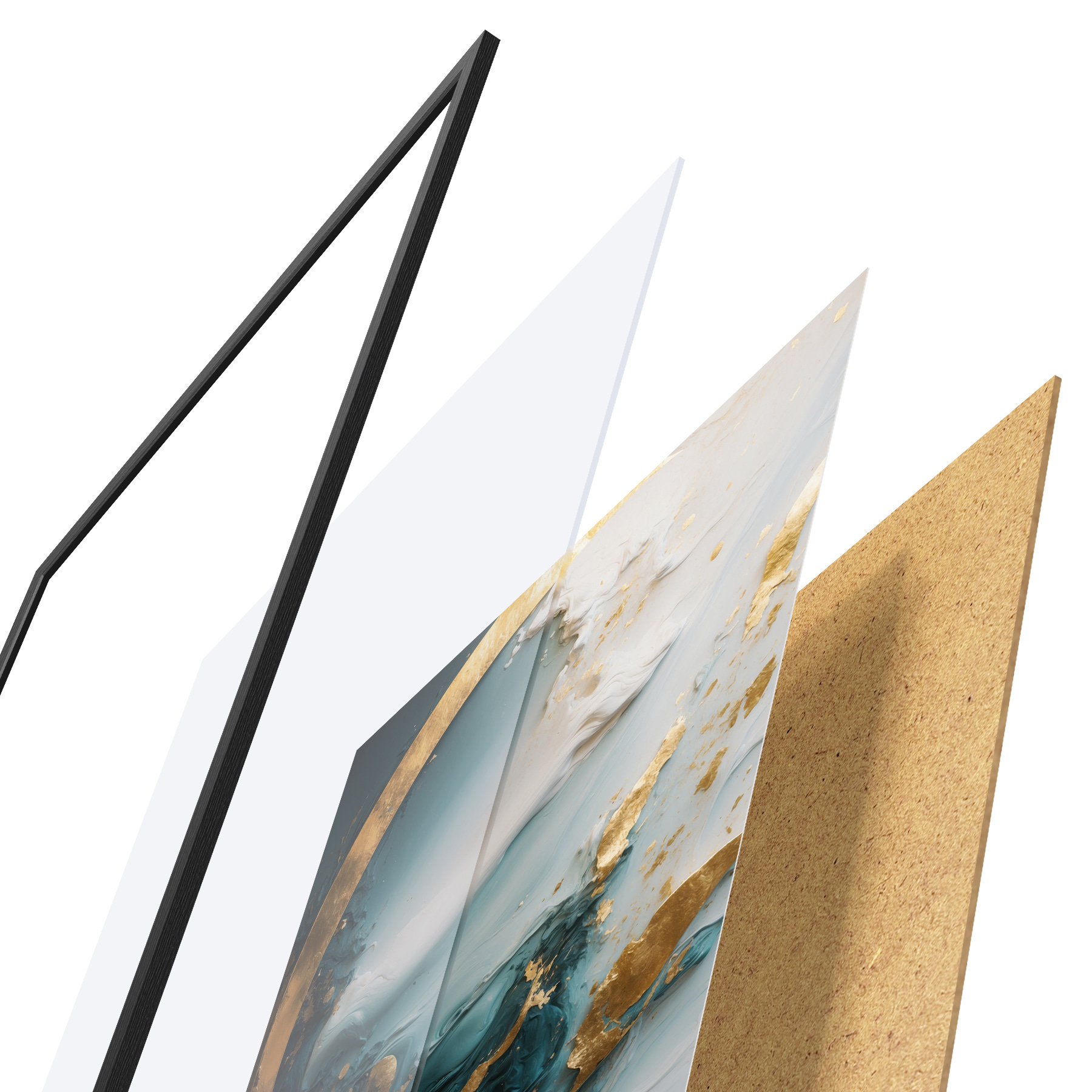 Plakatą sudaro rėmas, pleksiklas, atspausdintas vaizdas ir medžio drožlių plokštės pagrindas. Plakatą galima iš karto pakabinti ant sienos dėl kitoje pusėje esančių laikiklių.