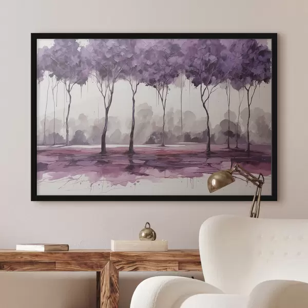 Plakatas Medžiai violetiniais lapais abstrakčiame fone Ne f39155