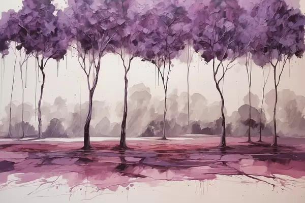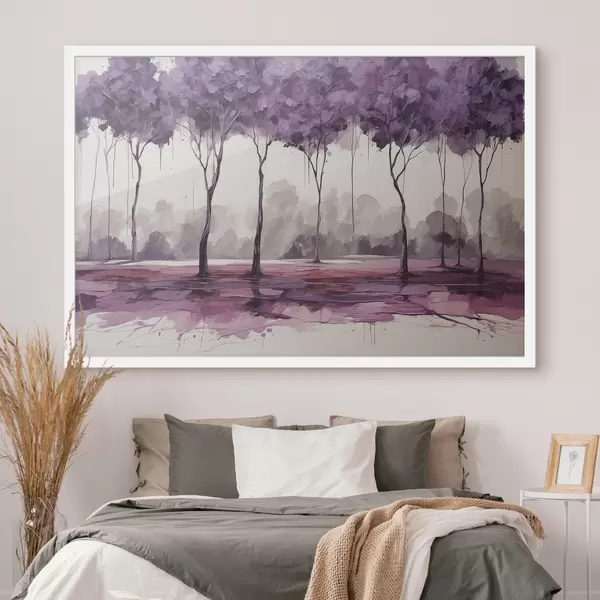 Plakatas Medžiai violetiniais lapais abstrakčiame fone Ne f39155