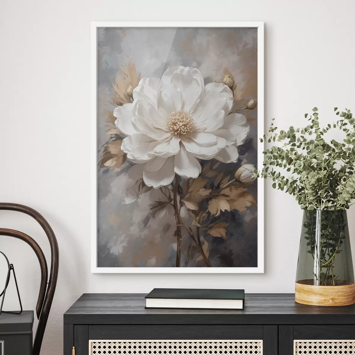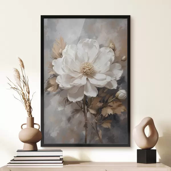 Plakatas Balta gėlė auksiniu stiebu f39166