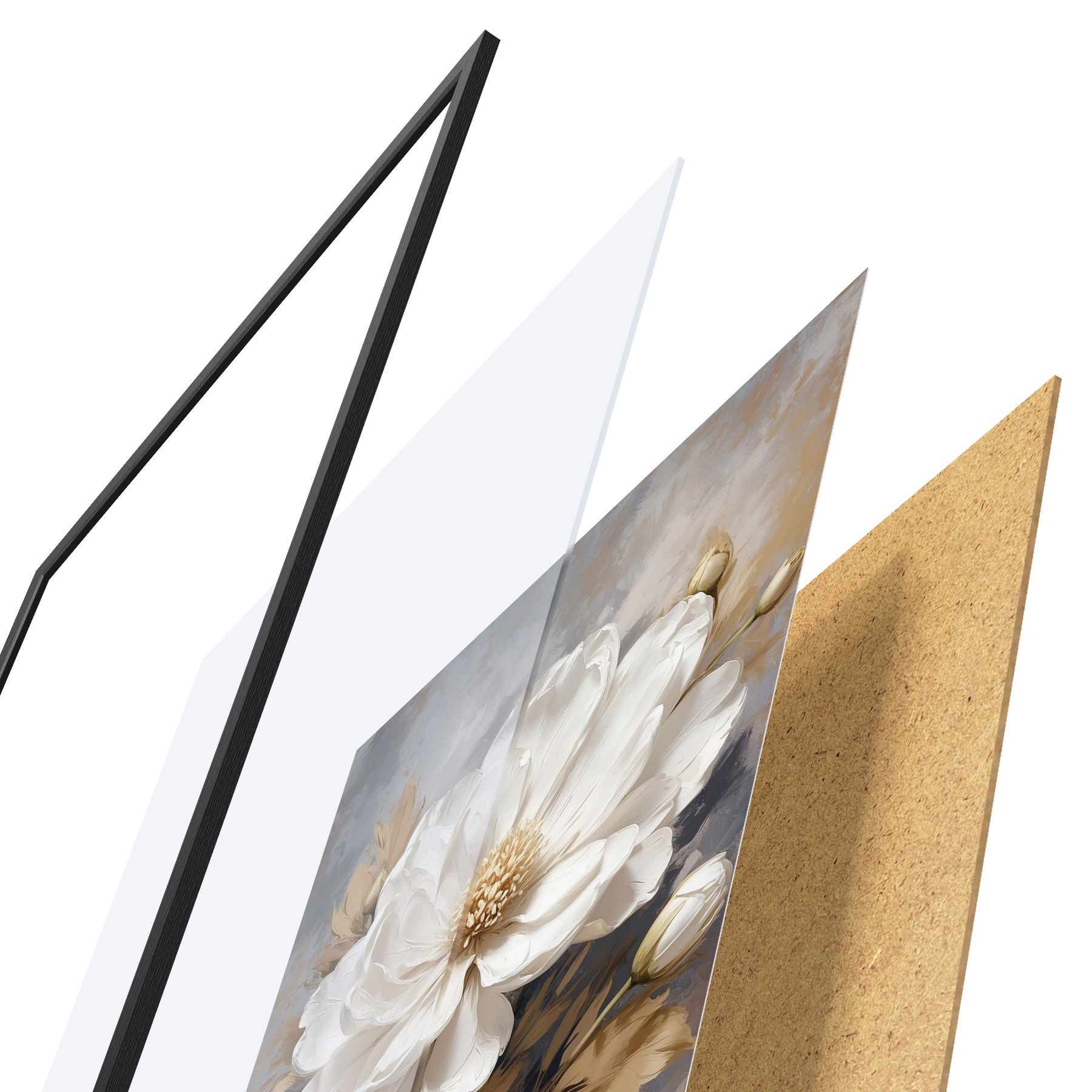 Plakatą sudaro rėmas, pleksiklas, atspausdintas vaizdas ir medžio drožlių plokštės pagrindas. Plakatą galima iš karto pakabinti ant sienos dėl kitoje pusėje esančių laikiklių.