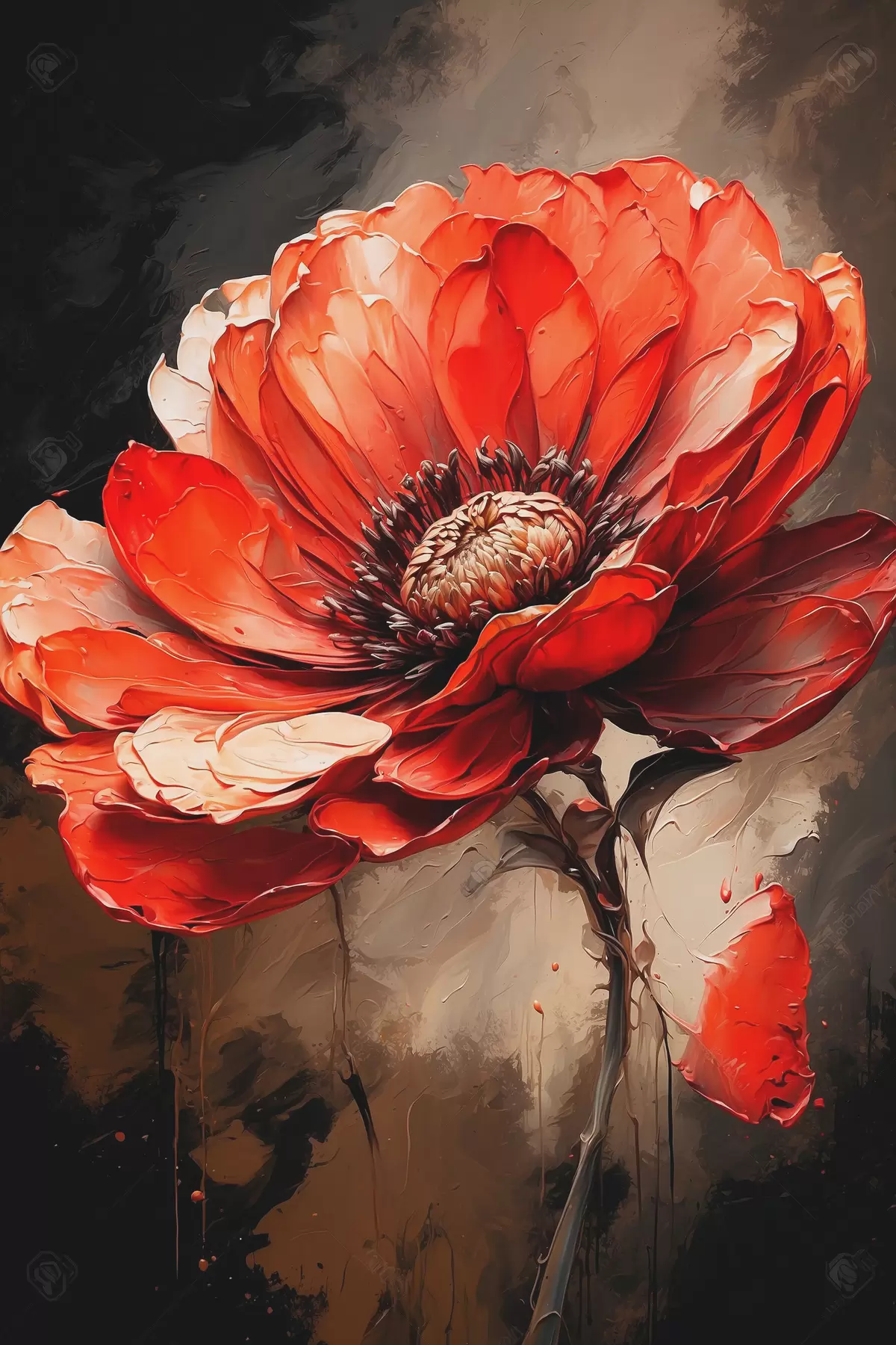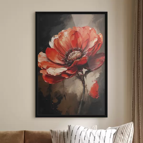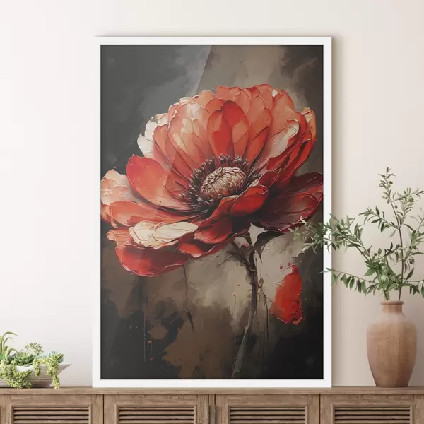 Plakatas Raudona gėlė tamsiame fone Ne f39172