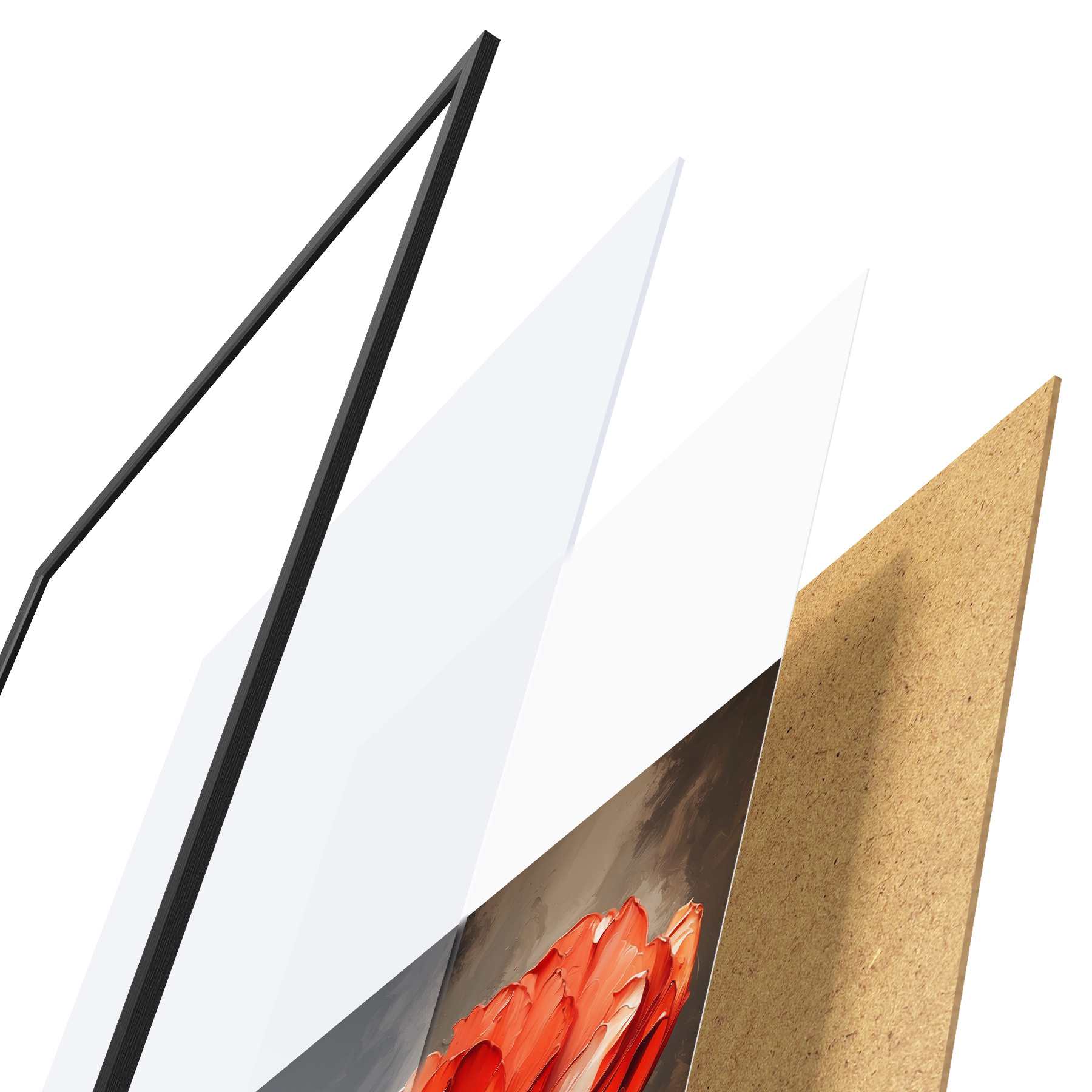 Plakatą sudaro rėmas, pleksiklas, atspausdintas vaizdas ir medžio drožlių plokštės pagrindas. Plakatą galima iš karto pakabinti ant sienos dėl kitoje pusėje esančių laikiklių.