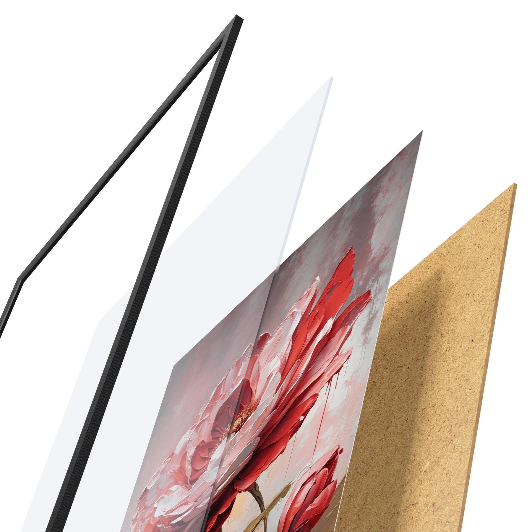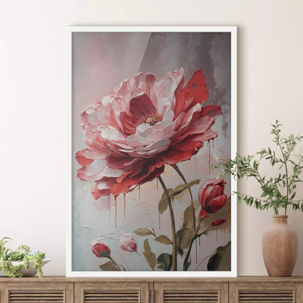 Plakatas Raudona gėlė baltai pilkame fone f39173