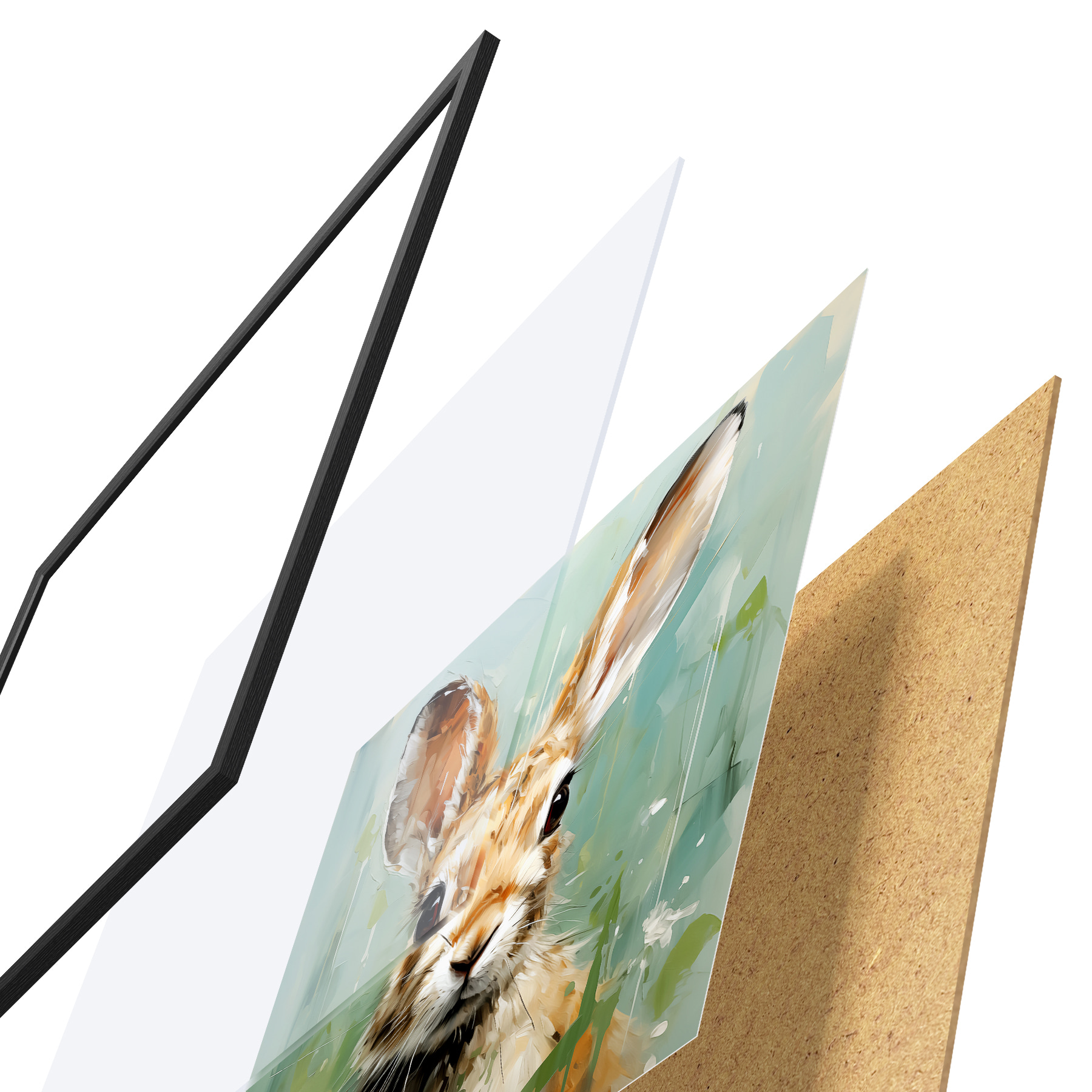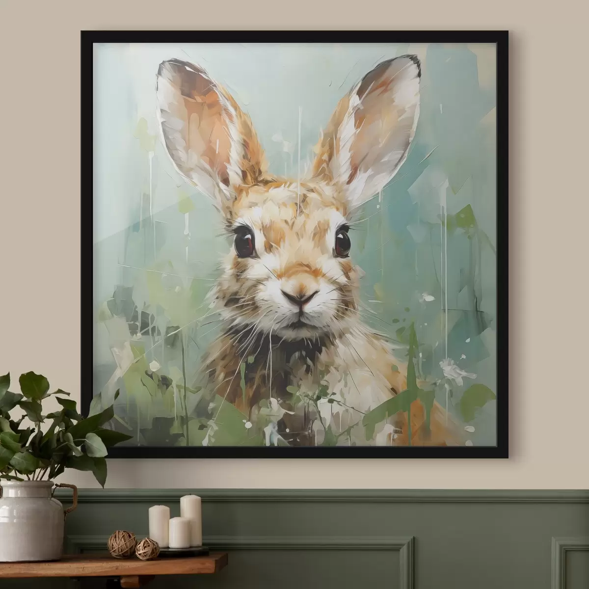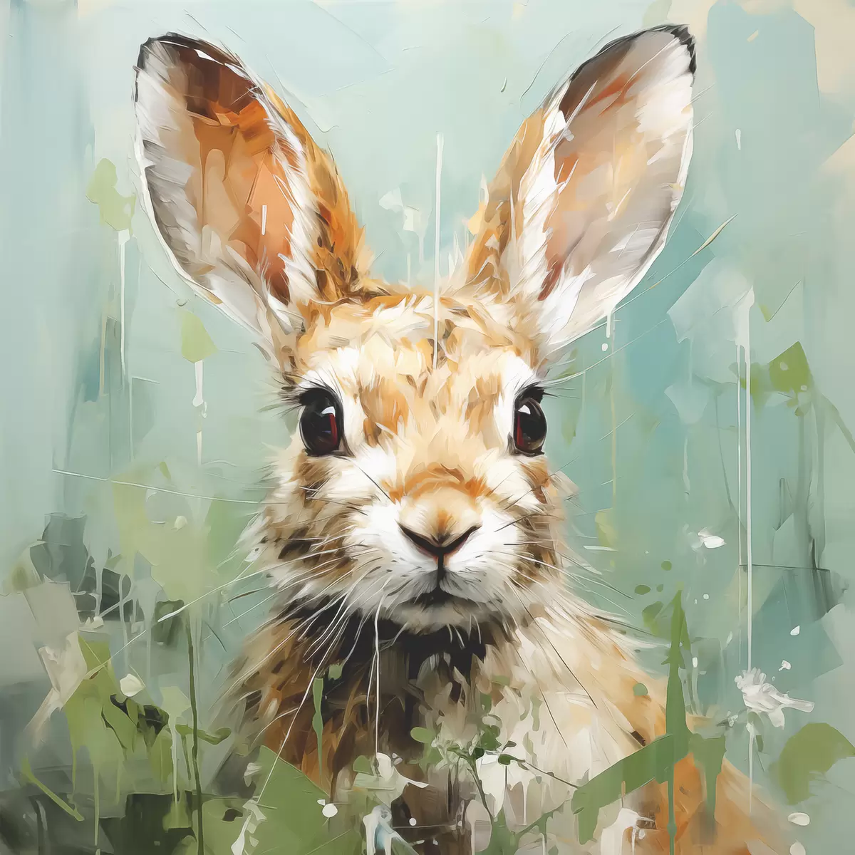 Plakatas Raudonas kiškis sėdi žolėje žaliame fone, abstraktus menas, tapyba aliejiniais dažais Ne f39184