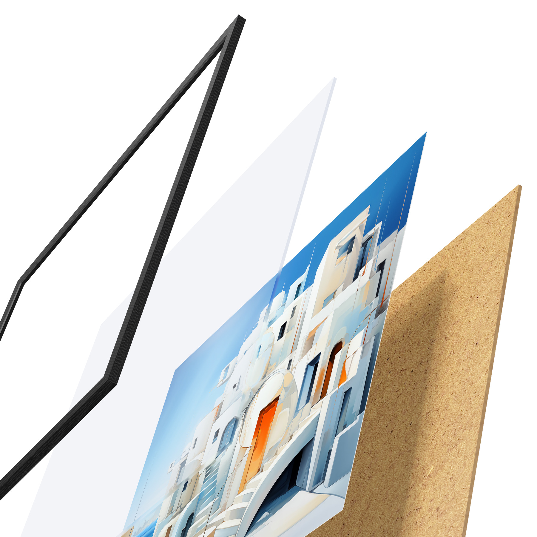 Plakatas Abstraktus baltas miestas prie jūros, architektūra, pastatas, mėlyna spalva Ne f39188