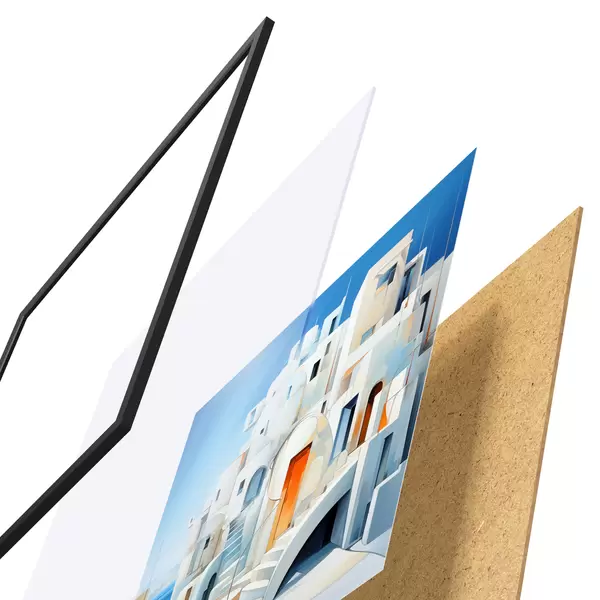 Plakatą sudaro rėmas, pleksiklas, atspausdintas vaizdas ir medžio drožlių plokštės pagrindas. Plakatą galima iš karto pakabinti ant sienos dėl kitoje pusėje esančių laikiklių.