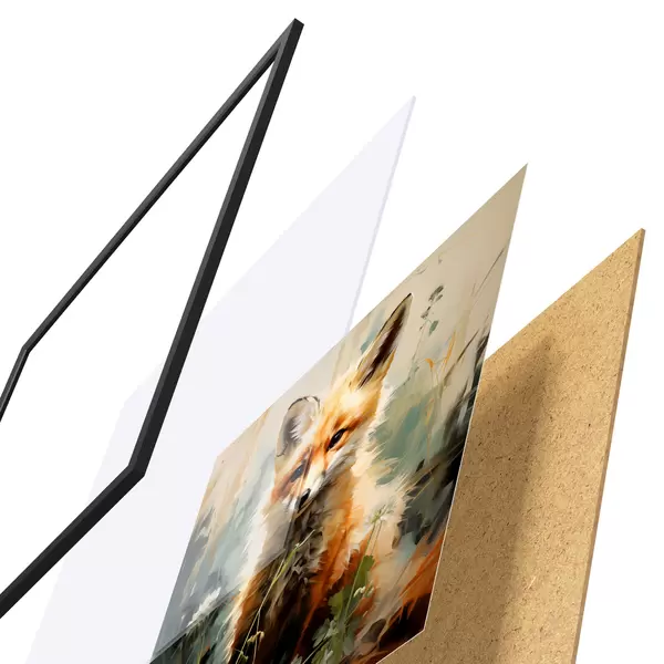 Plakatą sudaro rėmas, pleksiklas, atspausdintas vaizdas ir medžio drožlių plokštės pagrindas. Plakatą galima iš karto pakabinti ant sienos dėl kitoje pusėje esančių laikiklių.