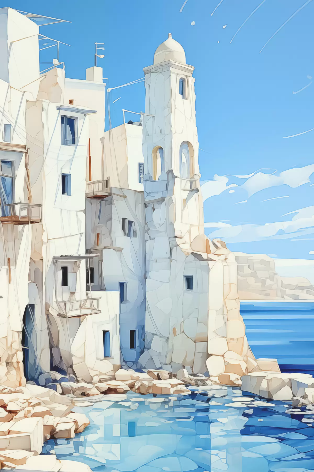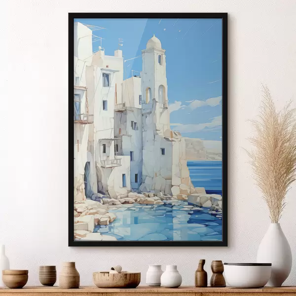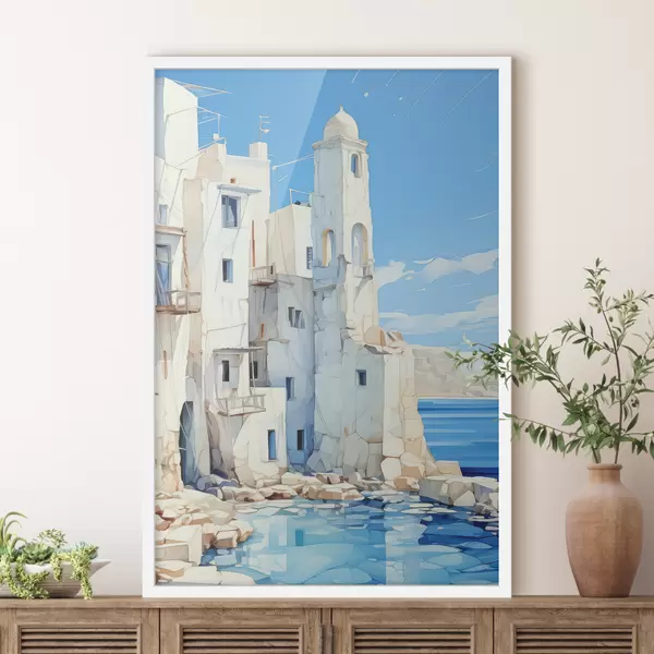 Plakatas Balti futuristiniai pastatai prie jūros, architektūra, kraštovaizdis Ne f39193