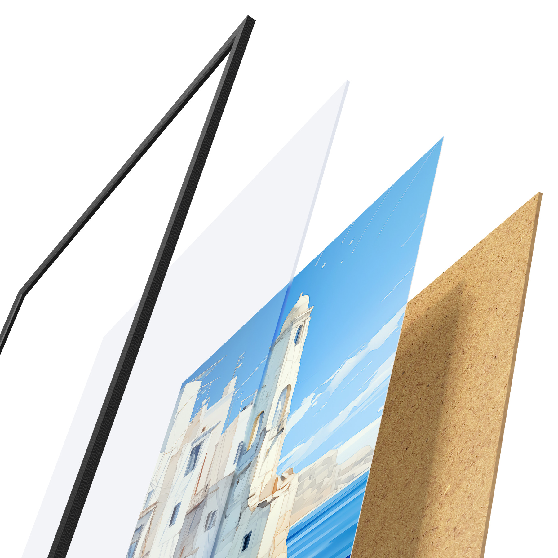 Plakatą sudaro rėmas, pleksiklas, atspausdintas vaizdas ir medžio drožlių plokštės pagrindas. Plakatą galima iš karto pakabinti ant sienos dėl kitoje pusėje esančių laikiklių.
