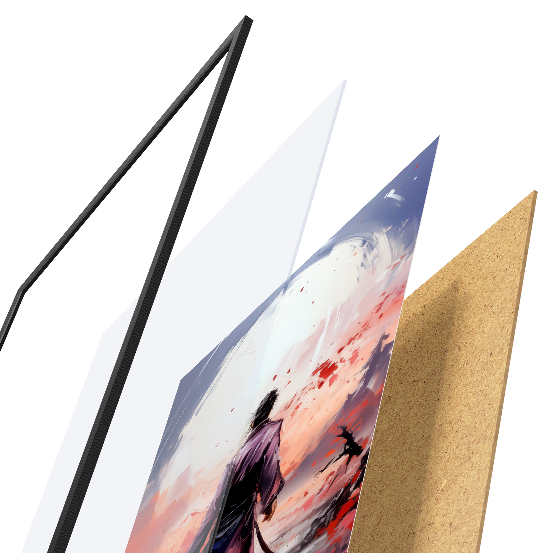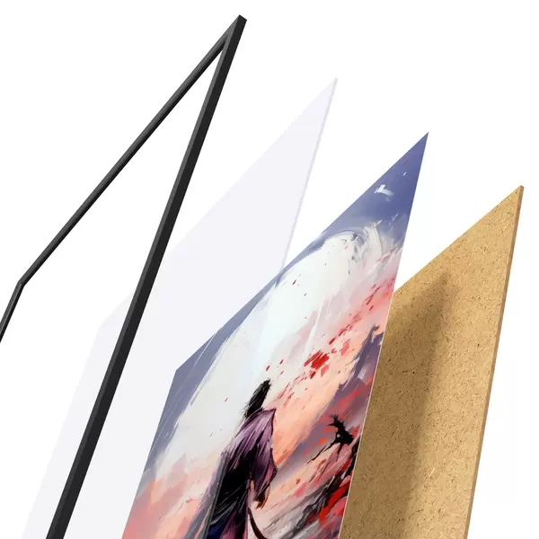 Plakatą sudaro rėmas, pleksiklas, atspausdintas vaizdas ir medžio drožlių plokštės pagrindas. Plakatą galima iš karto pakabinti ant sienos dėl kitoje pusėje esančių laikiklių.