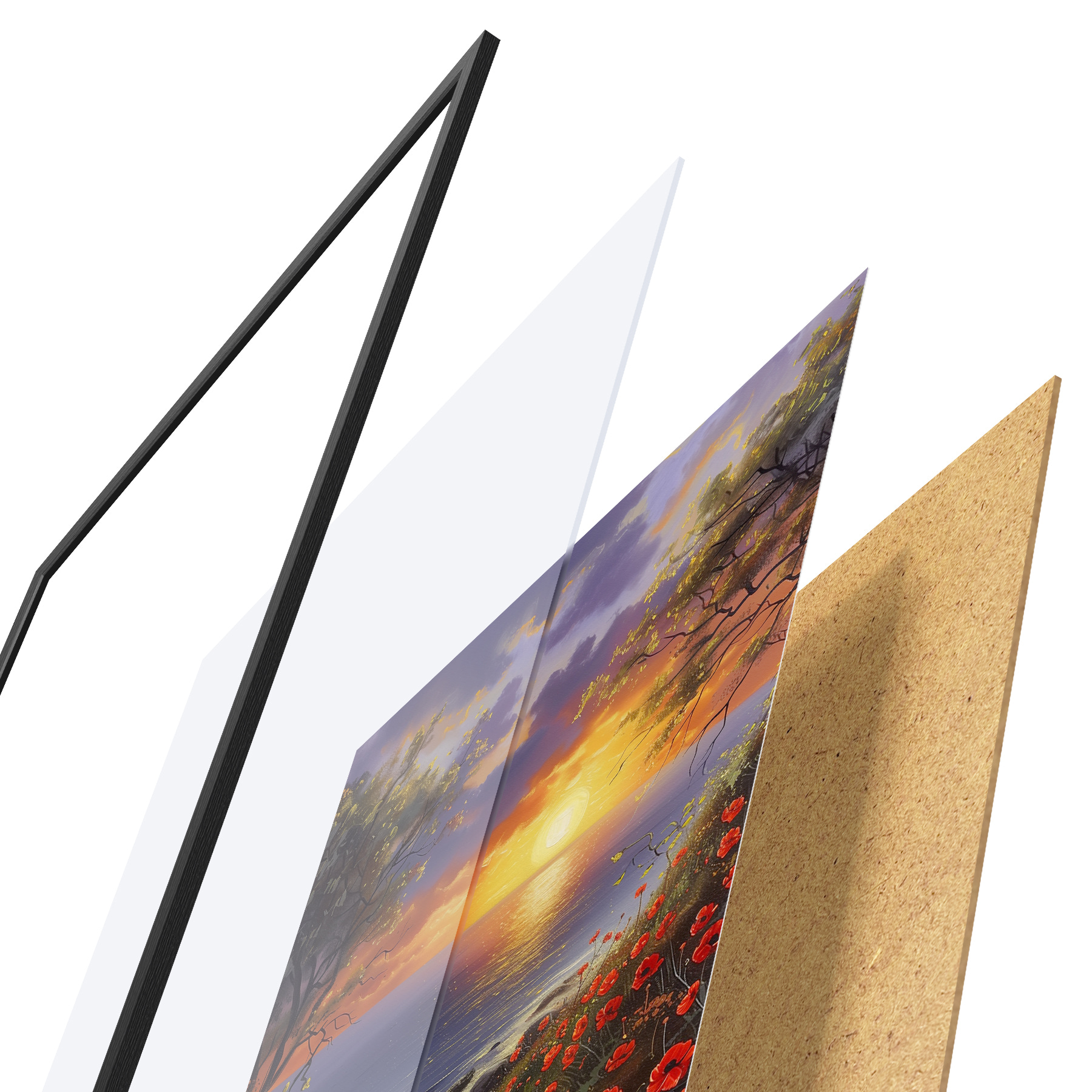 Plakatą sudaro rėmas, pleksiklas, atspausdintas vaizdas ir medžio drožlių plokštės pagrindas. Plakatą galima iš karto pakabinti ant sienos dėl kitoje pusėje esančių laikiklių.