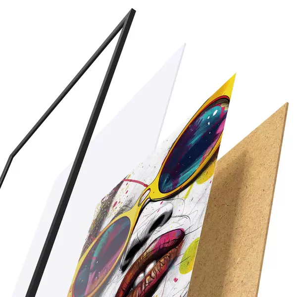 Plakatą sudaro rėmas, pleksiklas, atspausdintas vaizdas ir medžio drožlių plokštės pagrindas. Plakatą galima iš karto pakabinti ant sienos dėl kitoje pusėje esančių laikiklių.