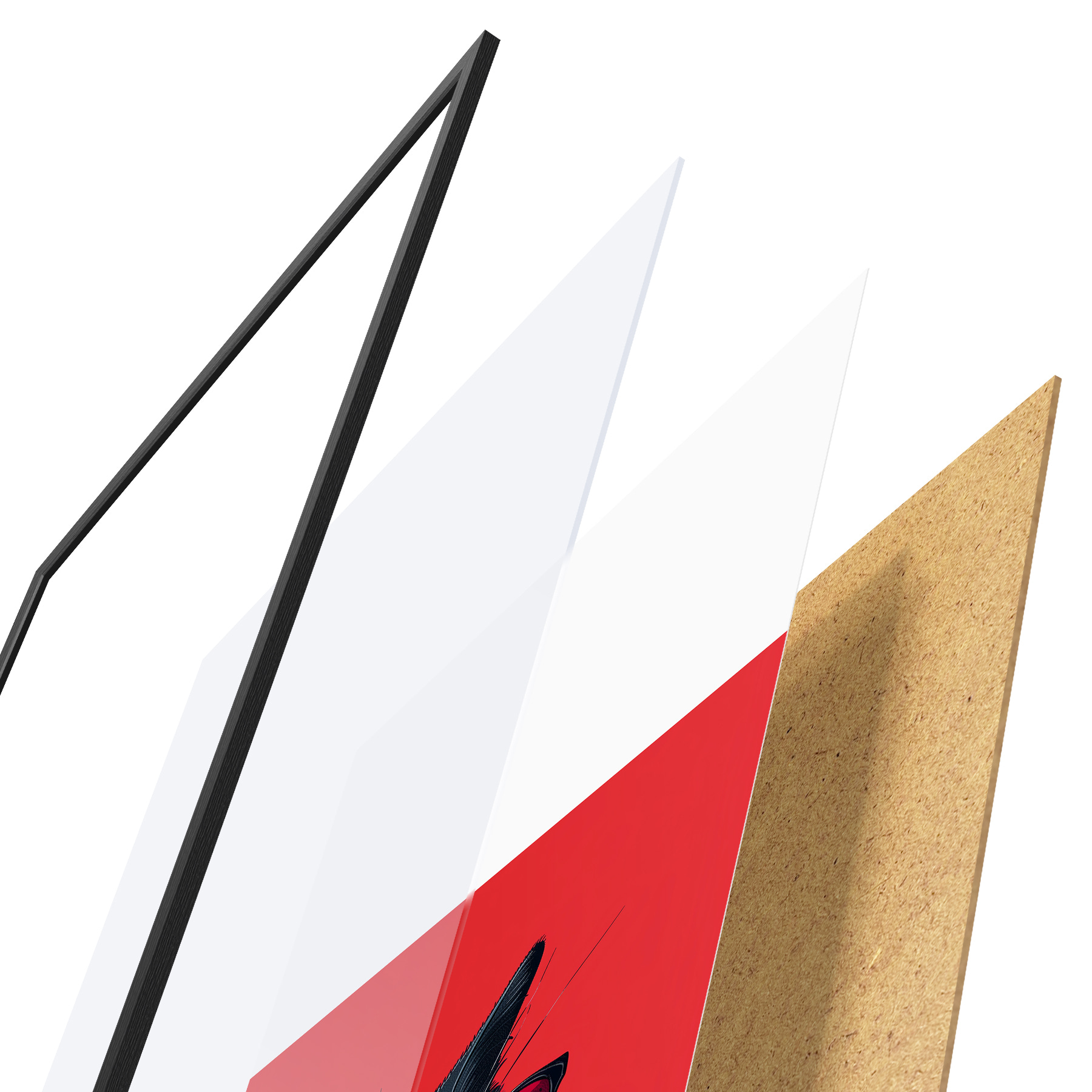 Plakatą sudaro rėmas, pleksiklas, atspausdintas vaizdas ir medžio drožlių plokštės pagrindas. Plakatą galima iš karto pakabinti ant sienos dėl kitoje pusėje esančių laikiklių.