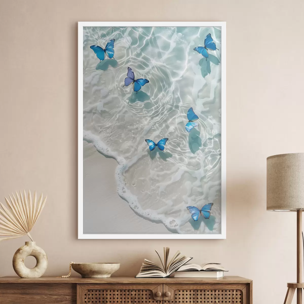 Plakatas Mėlyni drugeliai ant jūros bangos f39228
