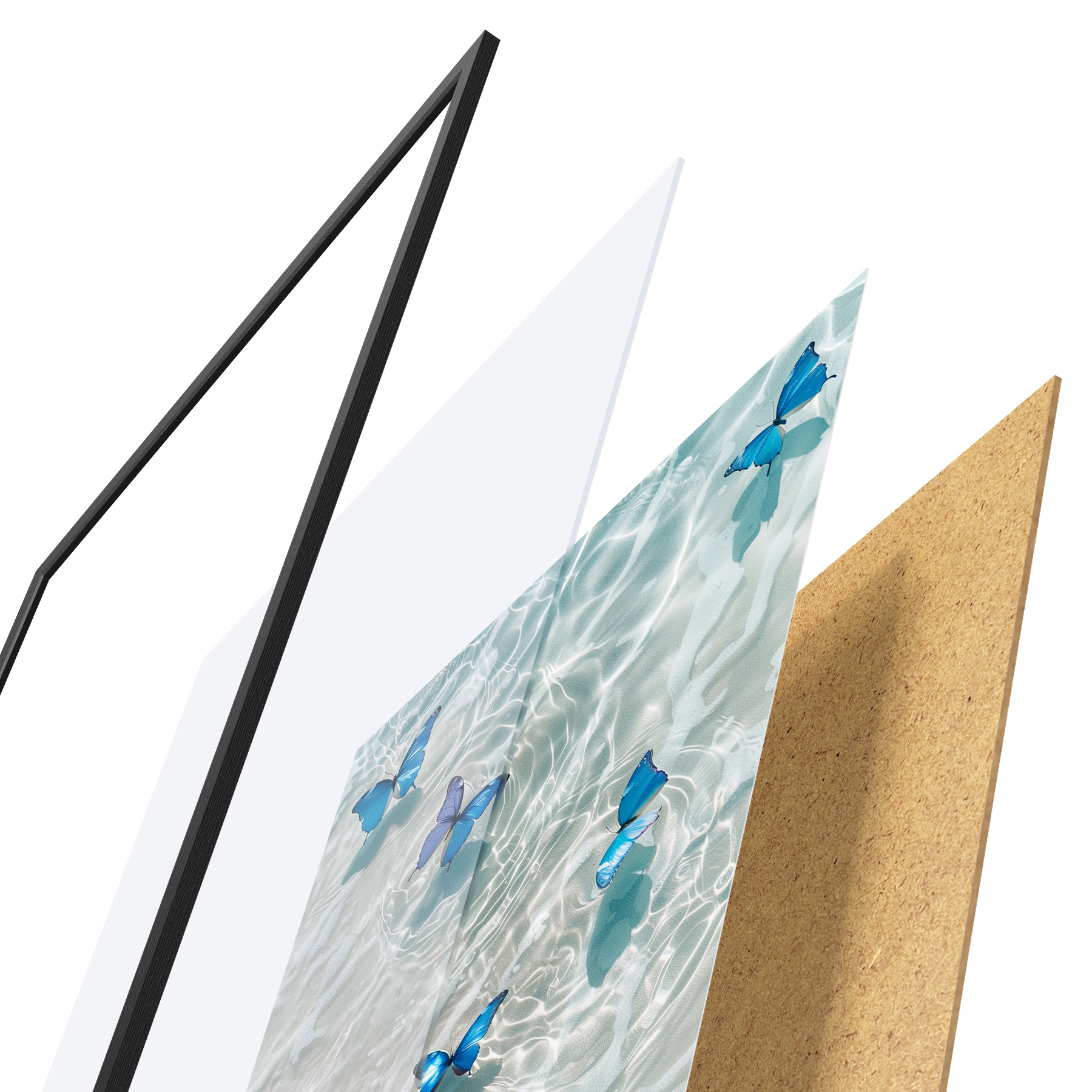 Plakatą sudaro rėmas, pleksiklas, atspausdintas vaizdas ir medžio drožlių plokštės pagrindas. Plakatą galima iš karto pakabinti ant sienos dėl kitoje pusėje esančių laikiklių.