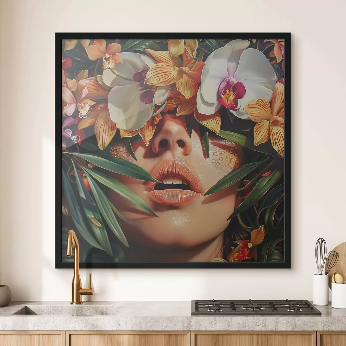 Plakatas Graži mergina ir įvairių gėlių f39230