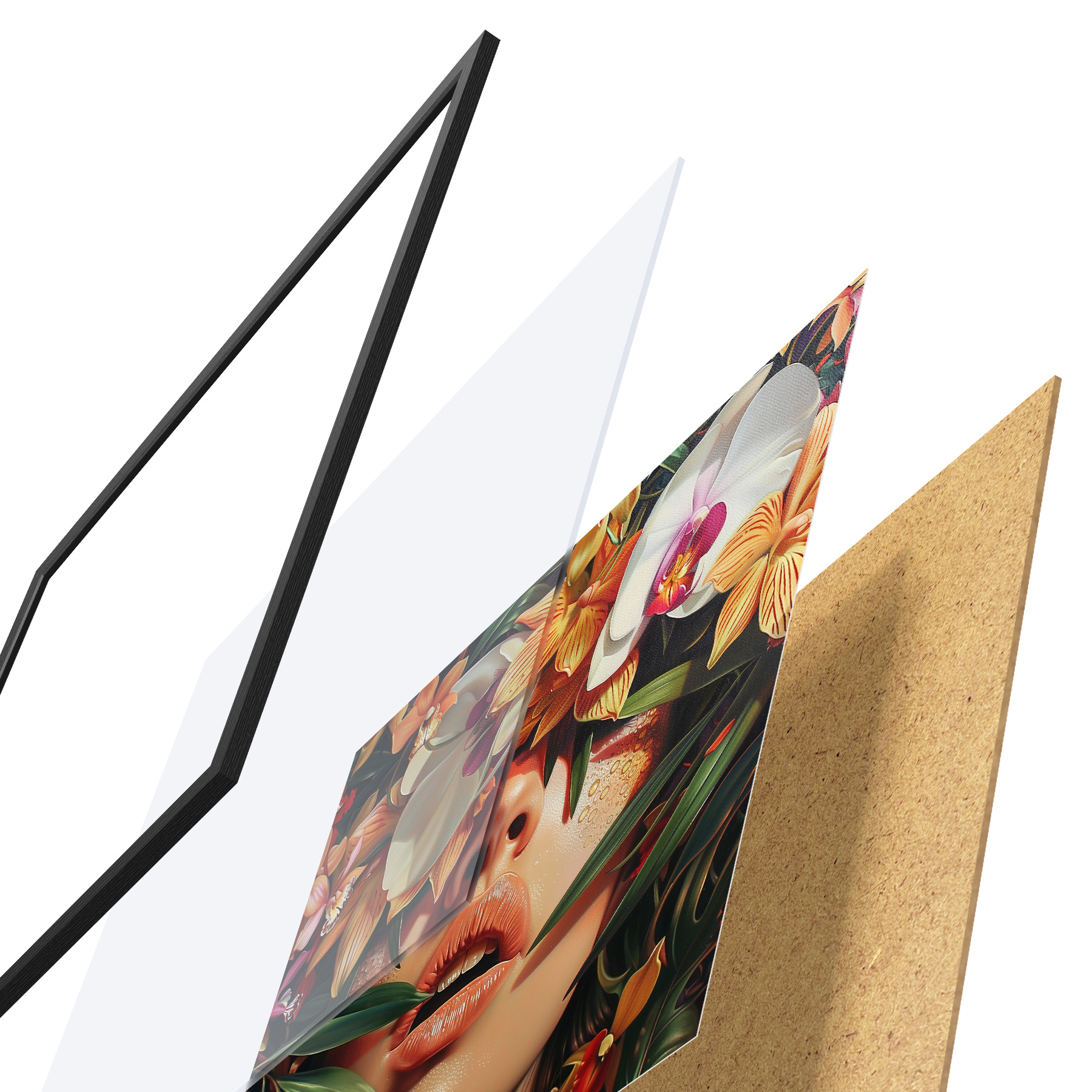 Plakatą sudaro rėmas, pleksiklas, atspausdintas vaizdas ir medžio drožlių plokštės pagrindas. Plakatą galima iš karto pakabinti ant sienos dėl kitoje pusėje esančių laikiklių.