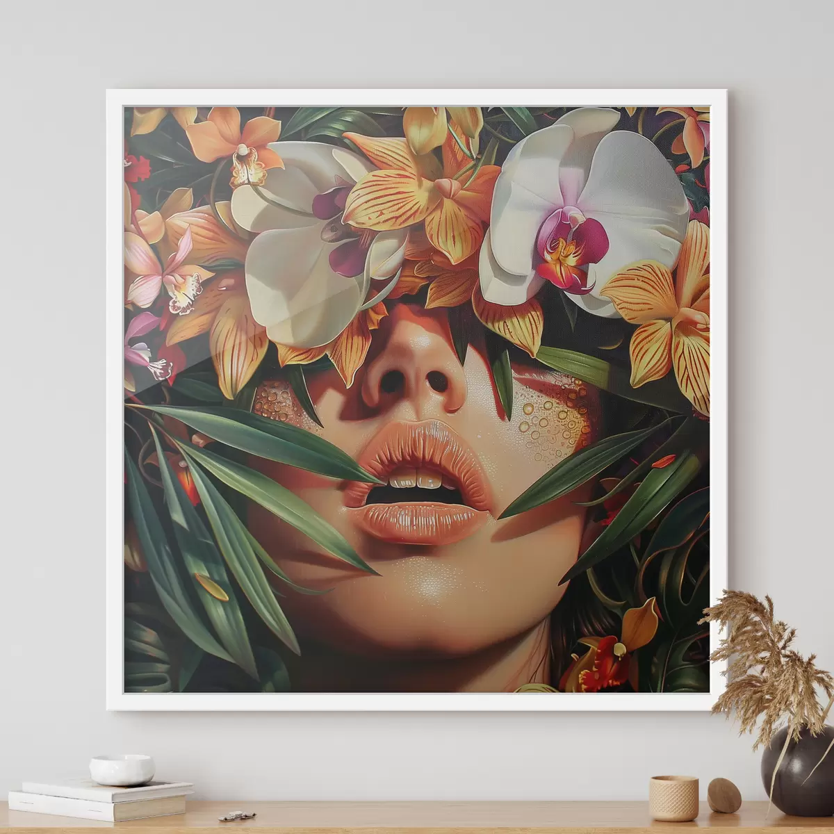 Plakatas Graži mergina ir įvairių gėlių Ne f39230