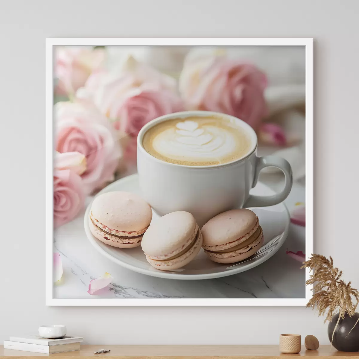 Plakatas Kavos puodelis subtiliame gėlių fone f39232