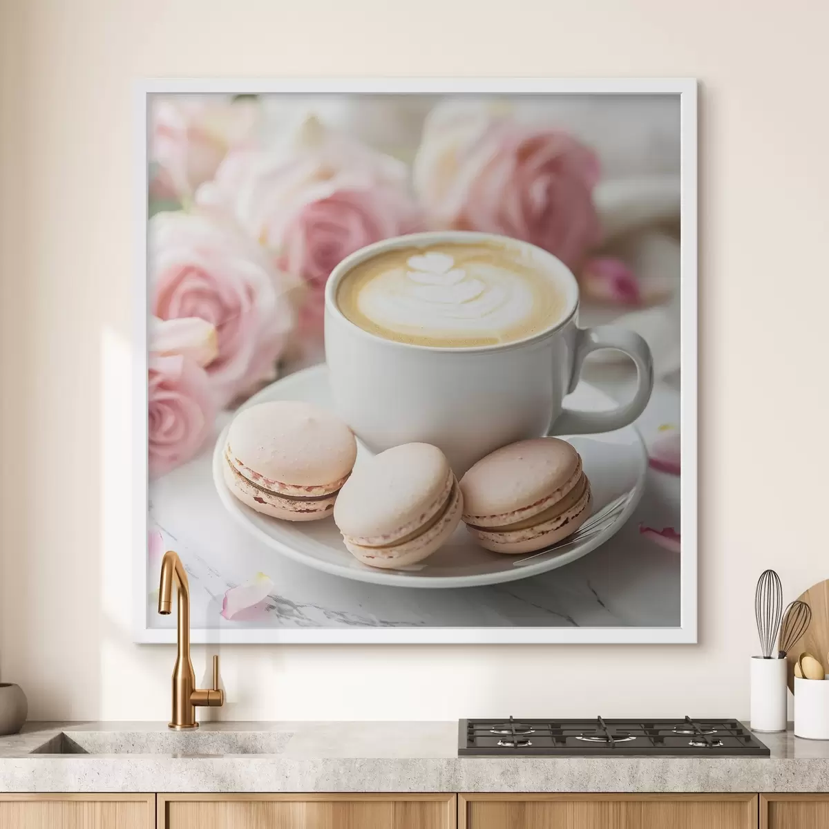 Plakatas Kavos puodelis subtiliame gėlių fone Ne f39232