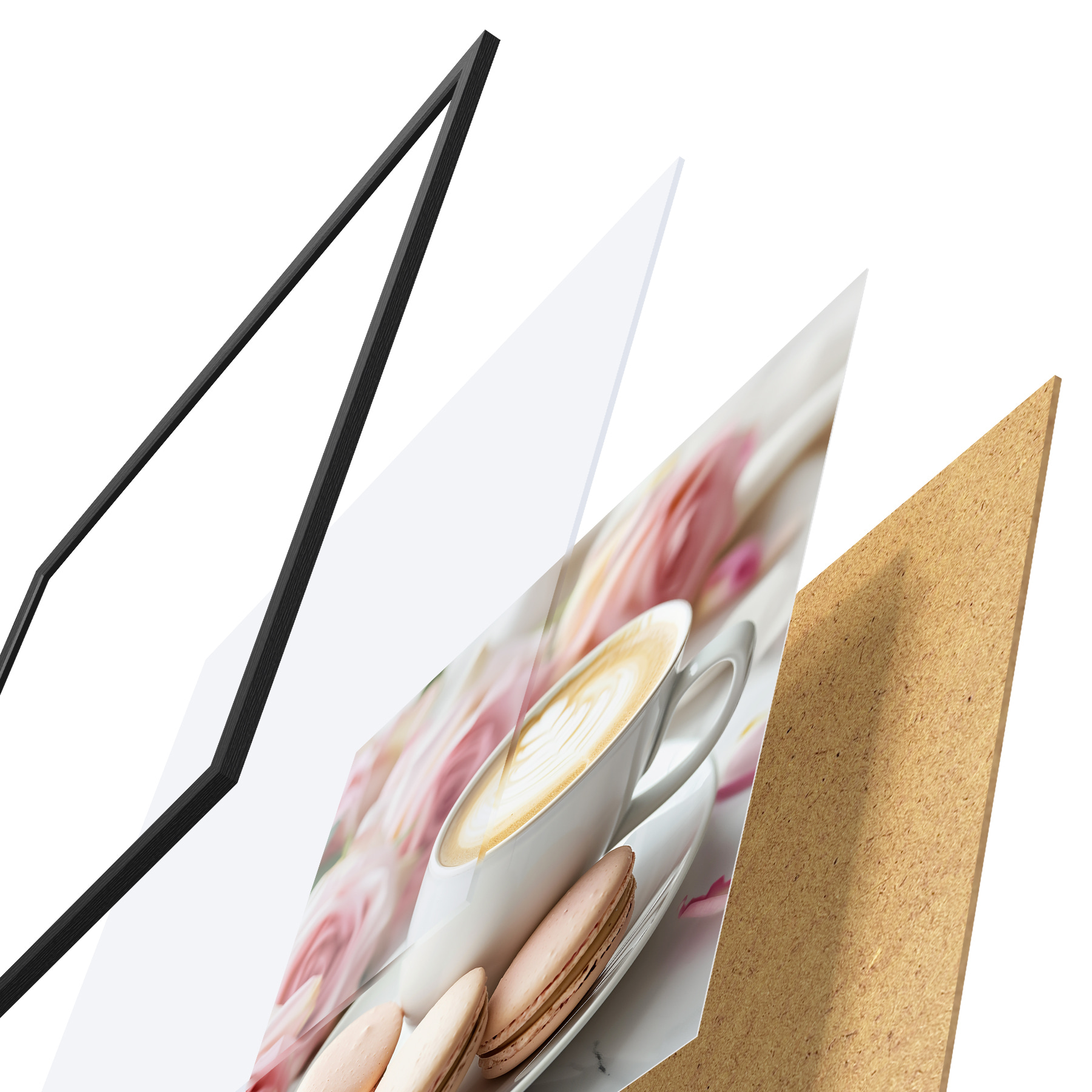 Plakatą sudaro rėmas, pleksiklas, atspausdintas vaizdas ir medžio drožlių plokštės pagrindas. Plakatą galima iš karto pakabinti ant sienos dėl kitoje pusėje esančių laikiklių.