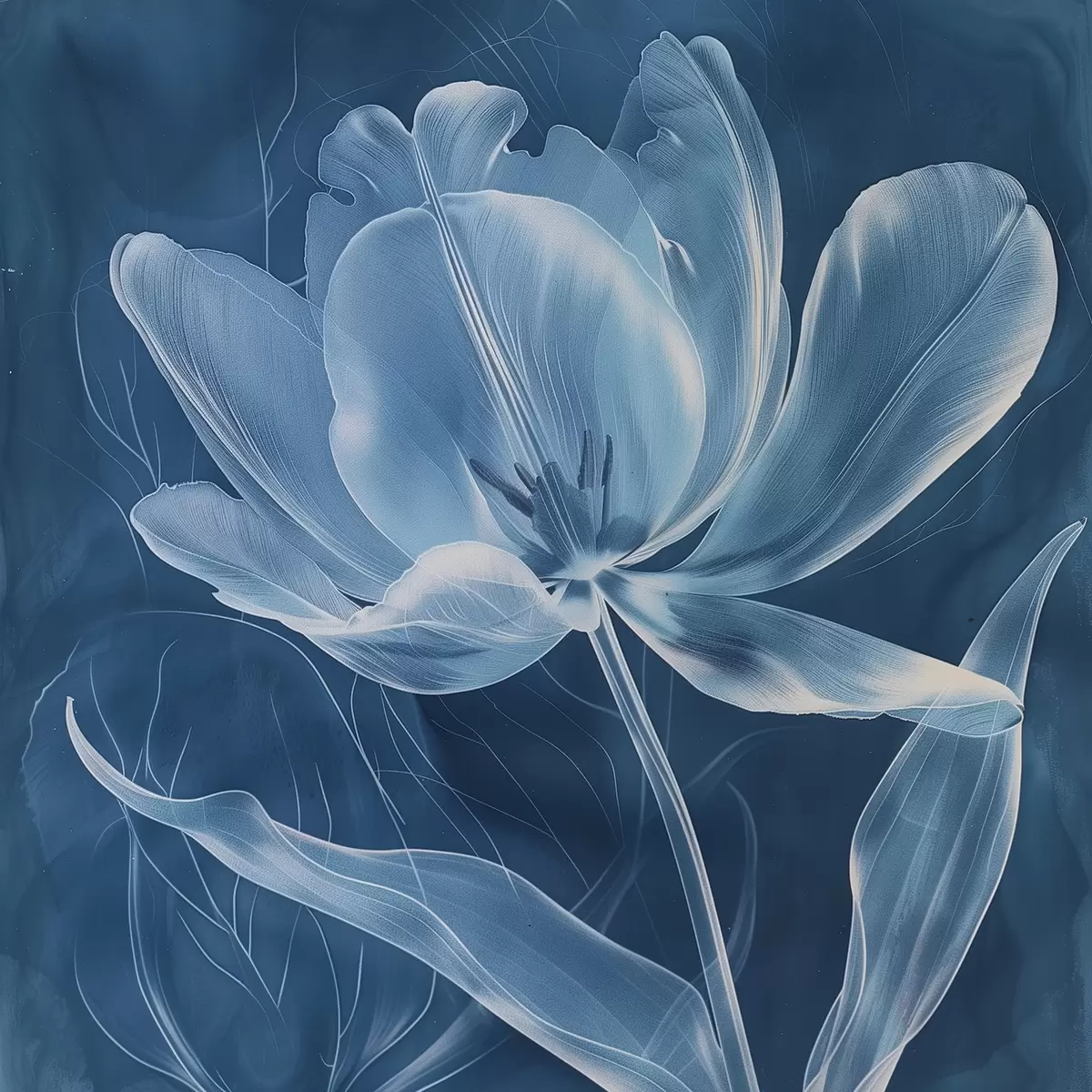 Plakatas Abstrakti gėlė mėlyname fone Ne f39234