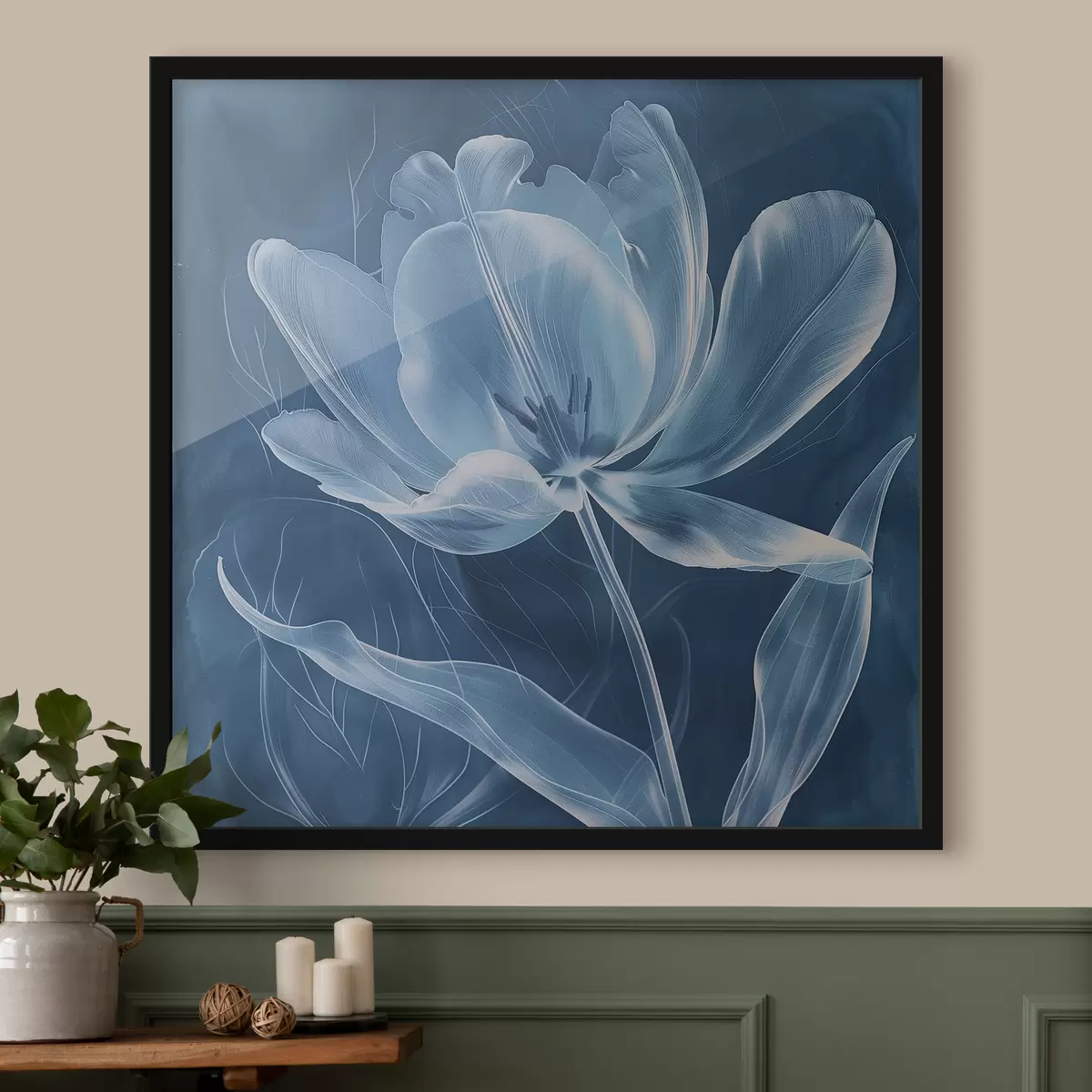 Plakatas Abstrakti gėlė mėlyname fone f39234
