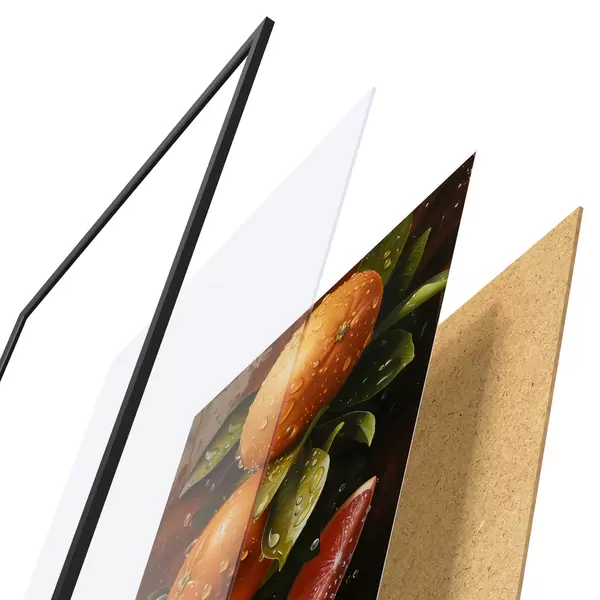 Plakatą sudaro rėmas, pleksiklas, atspausdintas vaizdas ir medžio drožlių plokštės pagrindas. Plakatą galima iš karto pakabinti ant sienos dėl kitoje pusėje esančių laikiklių.