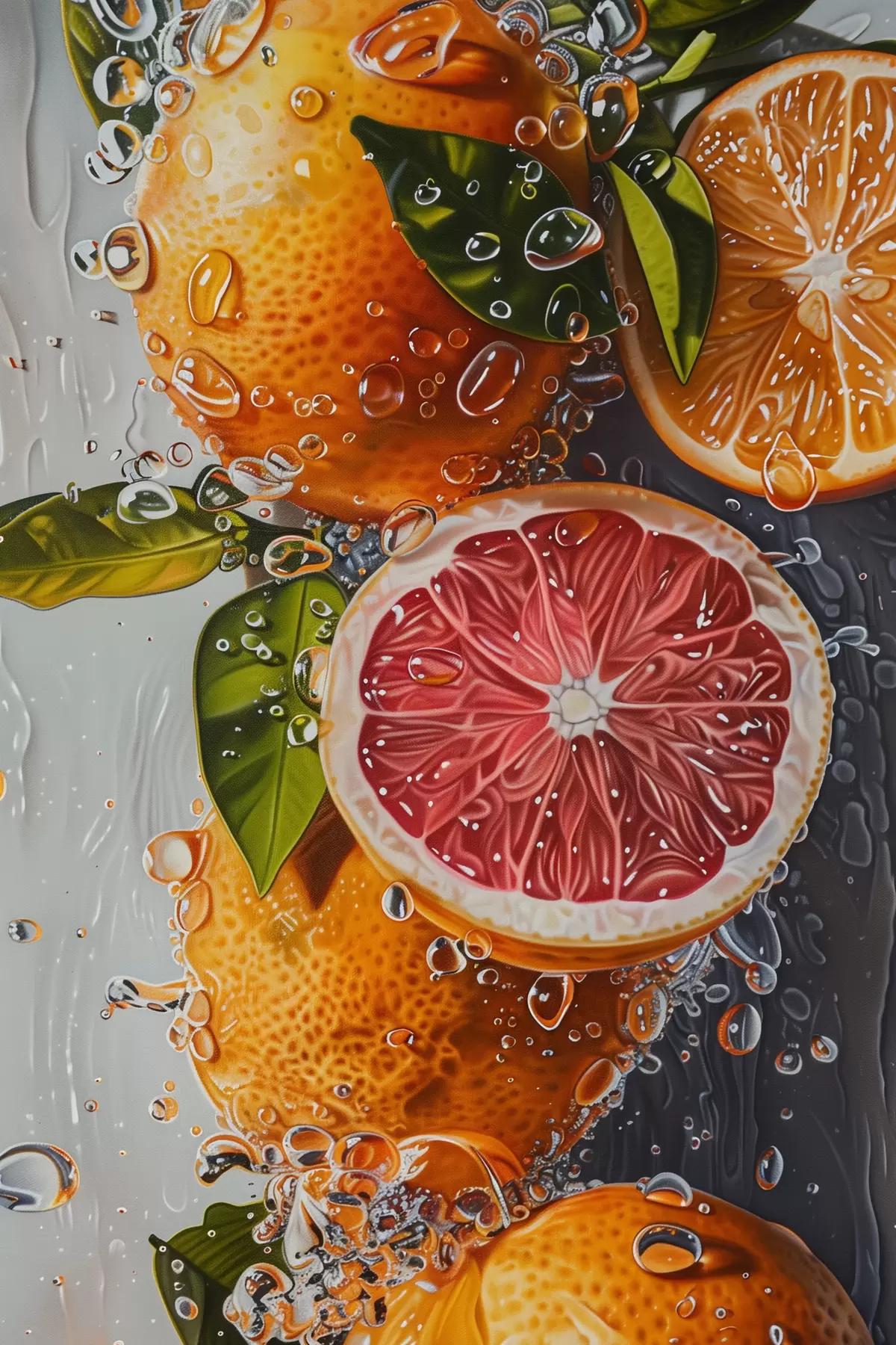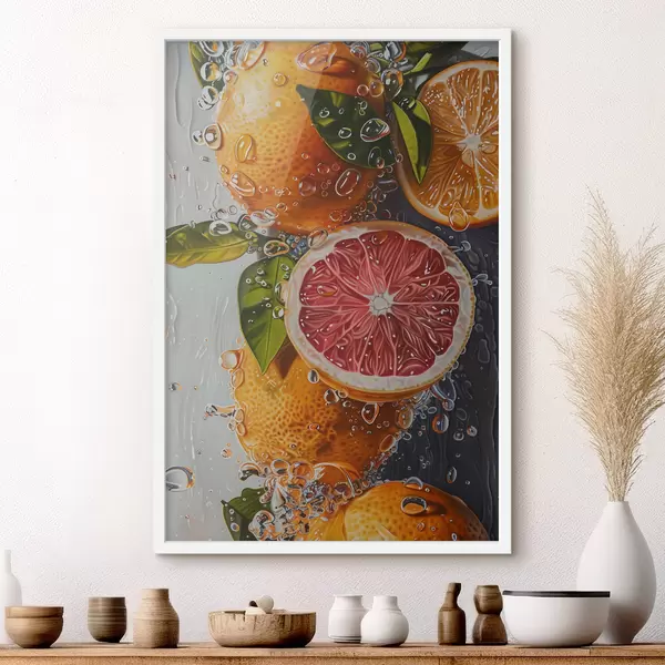 Plakatas Apelsinai ir vandens purslai Ne f39240