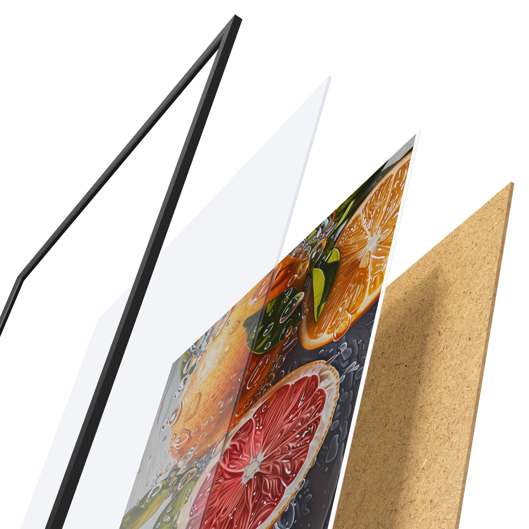 Plakatą sudaro rėmas, pleksiklas, atspausdintas vaizdas ir medžio drožlių plokštės pagrindas. Plakatą galima iš karto pakabinti ant sienos dėl kitoje pusėje esančių laikiklių.
