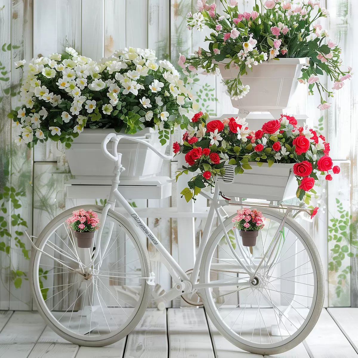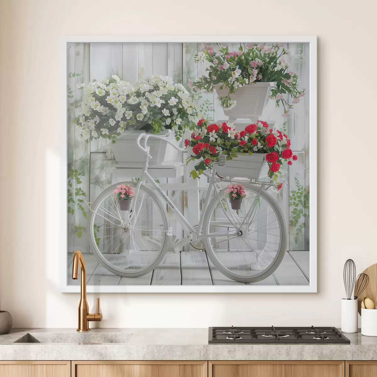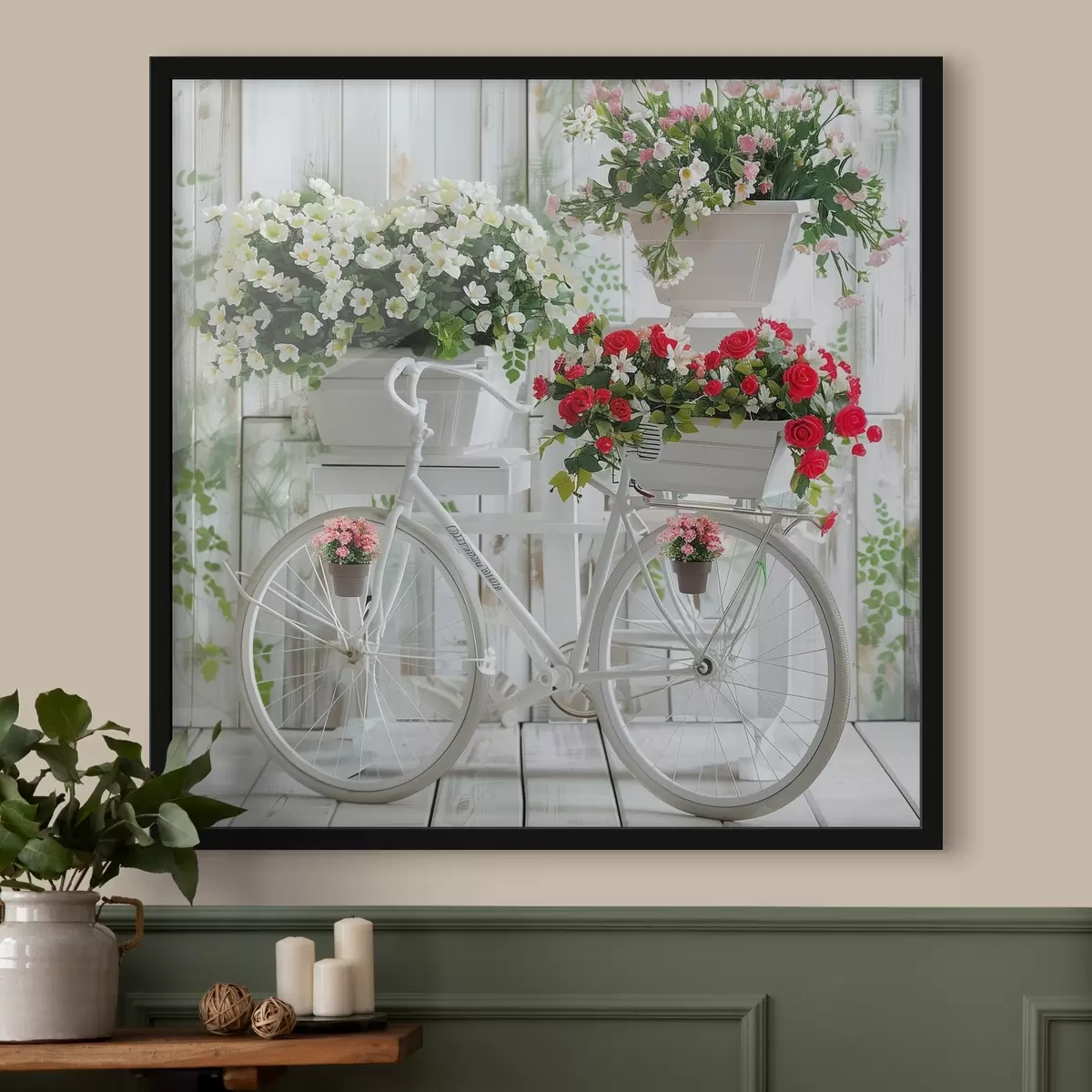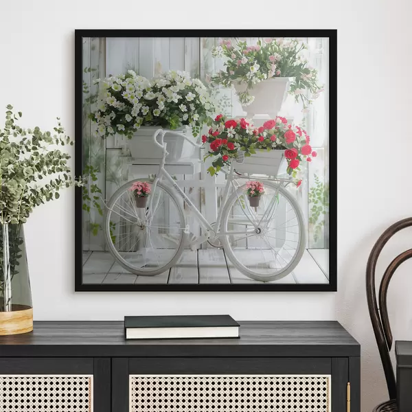 Plakatas Provanso stiliaus dviratis ir gėlių krepšelis f39242
