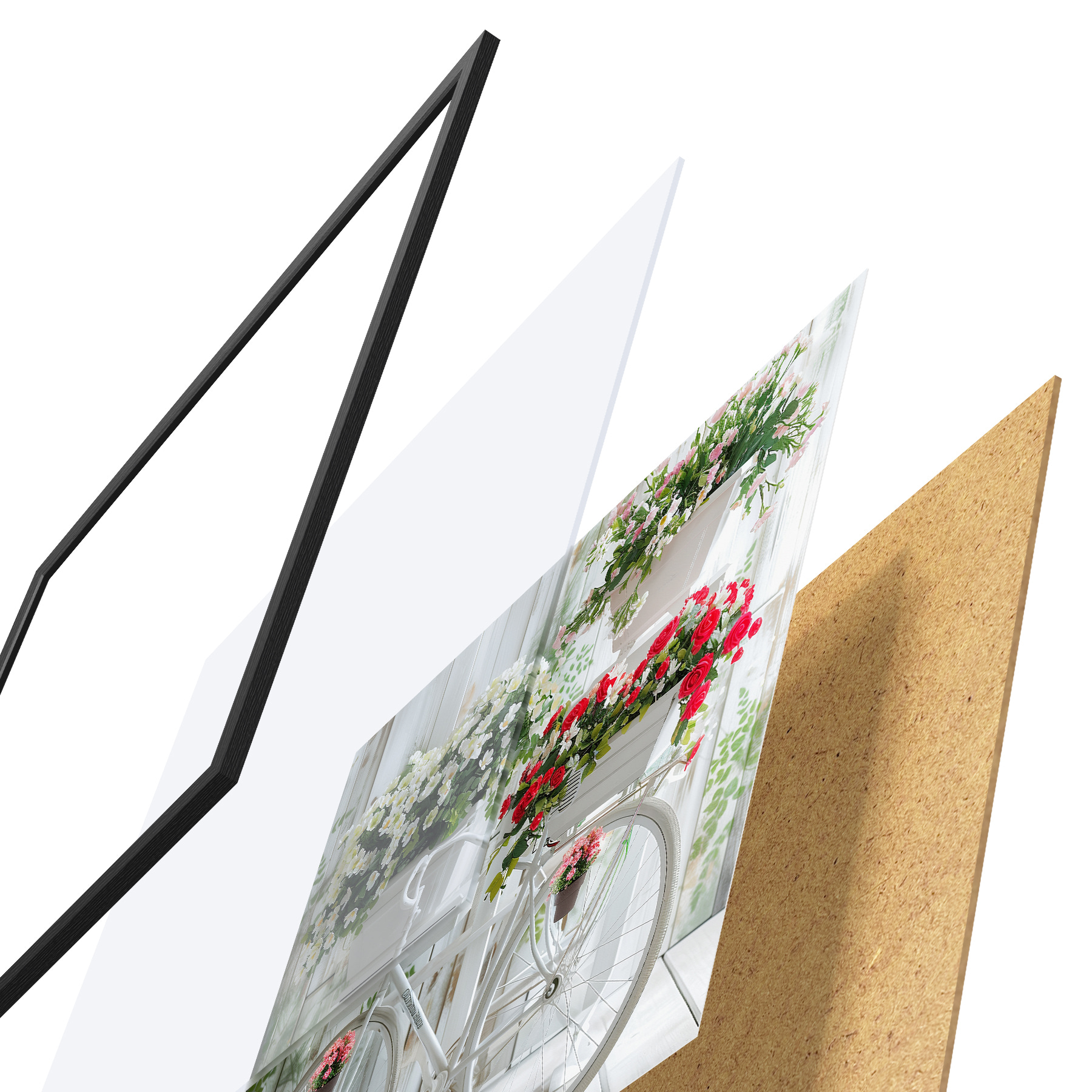 Plakatą sudaro rėmas, pleksiklas, atspausdintas vaizdas ir medžio drožlių plokštės pagrindas. Plakatą galima iš karto pakabinti ant sienos dėl kitoje pusėje esančių laikiklių.