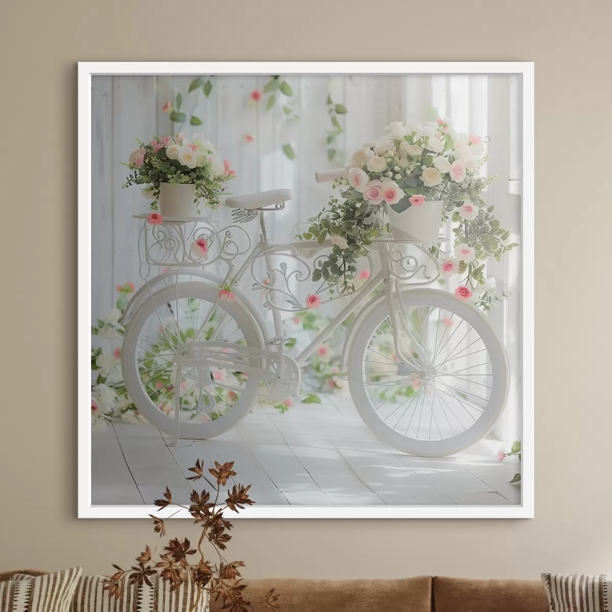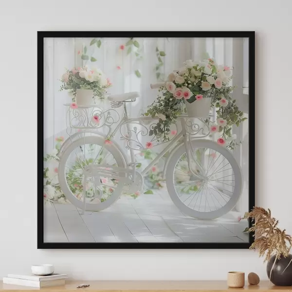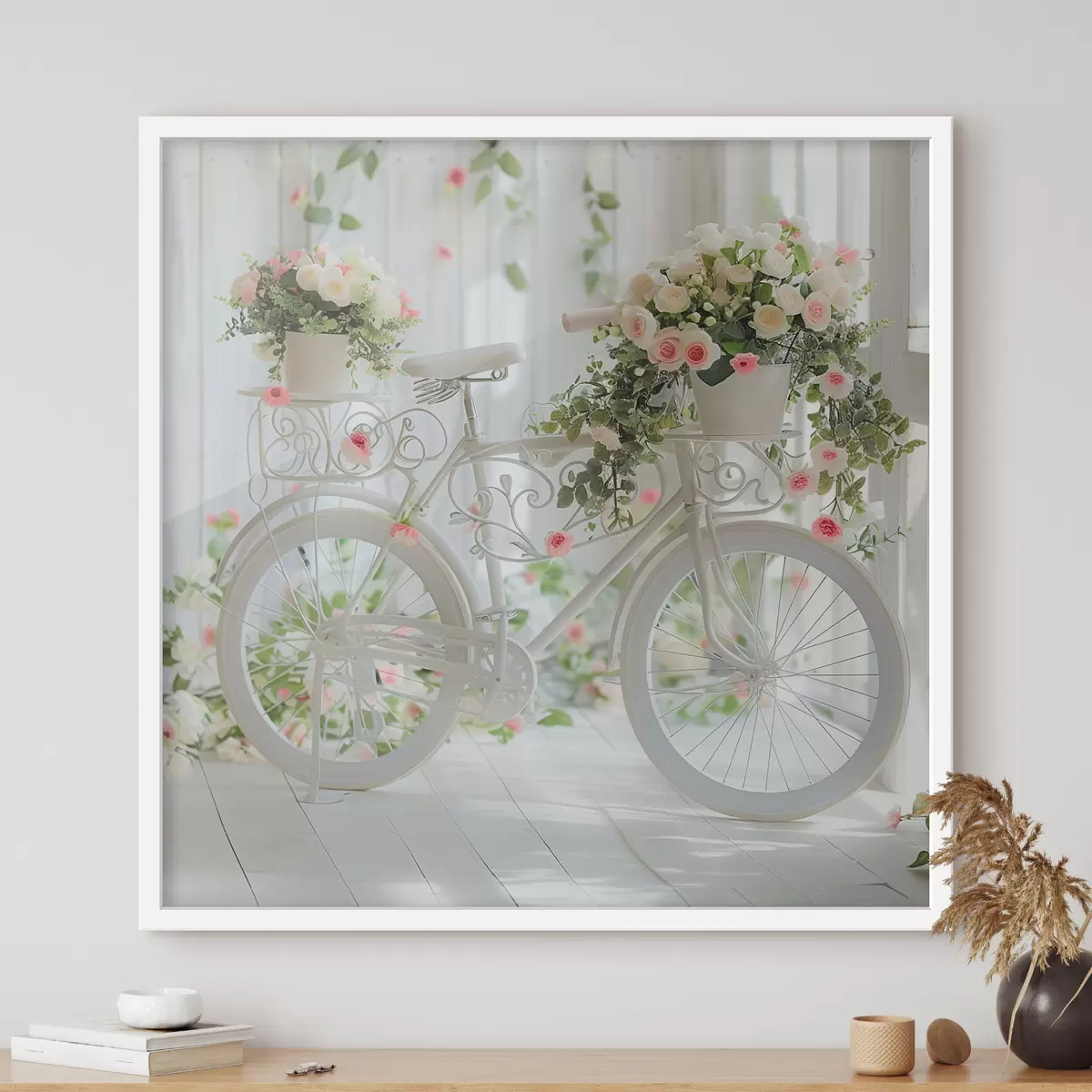 Plakatas Baltas dviratis su gėlių krepšeliu Provanso stiliumi Ne f39243