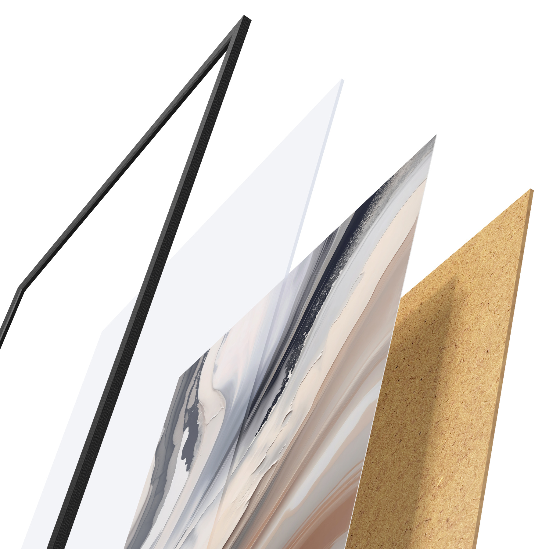 Plakatą sudaro rėmas, pleksiklas, atspausdintas vaizdas ir medžio drožlių plokštės pagrindas. Plakatą galima iš karto pakabinti ant sienos dėl kitoje pusėje esančių laikiklių.