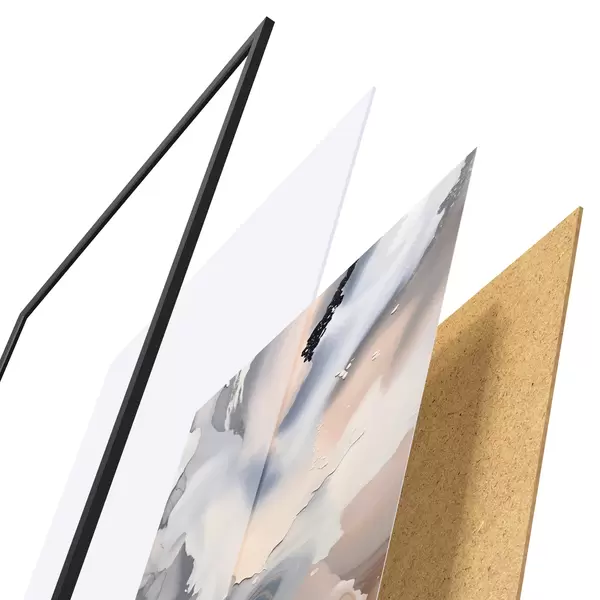 Plakatą sudaro rėmas, pleksiklas, atspausdintas vaizdas ir medžio drožlių plokštės pagrindas. Plakatą galima iš karto pakabinti ant sienos dėl kitoje pusėje esančių laikiklių.