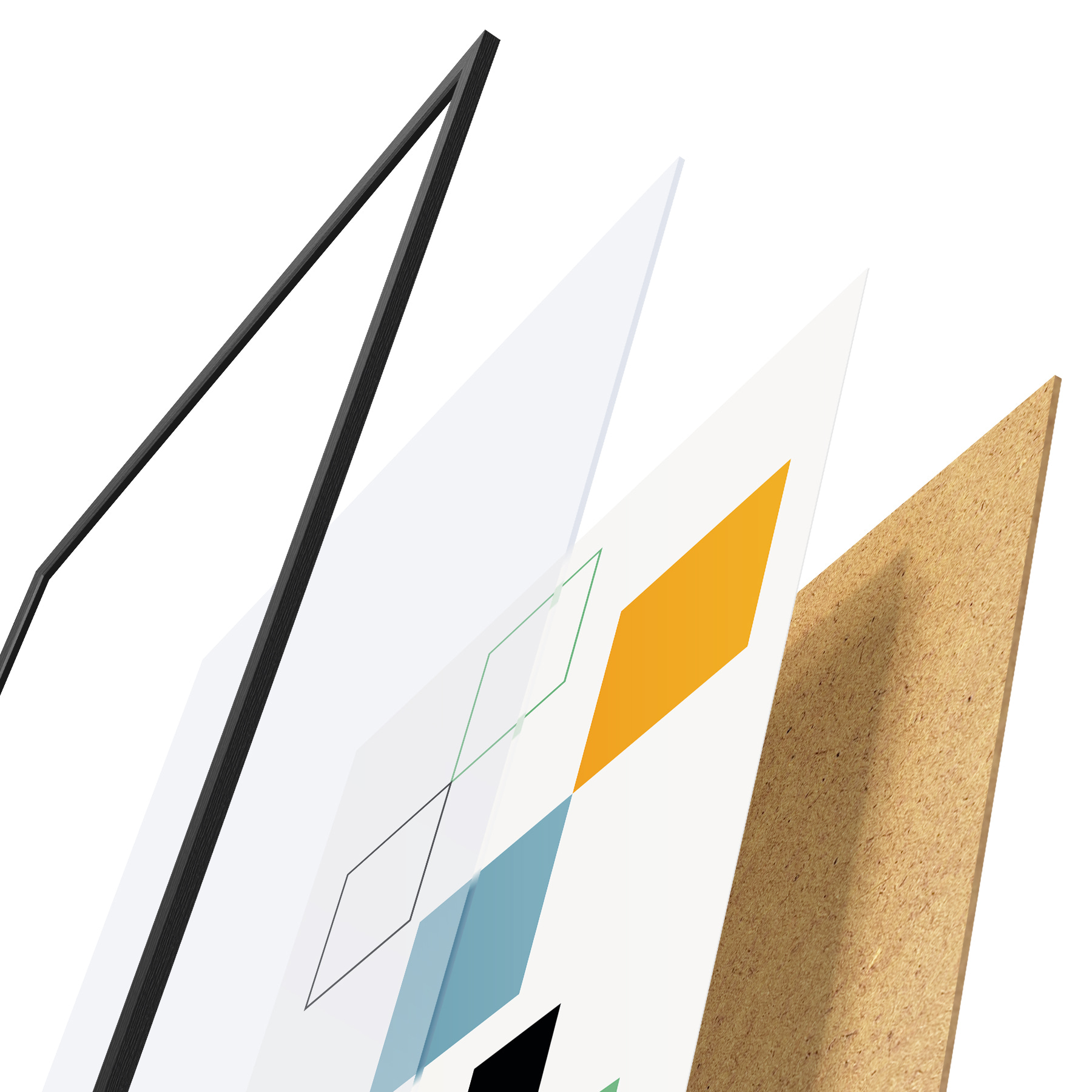 Plakatą sudaro rėmas, pleksiklas, atspausdintas vaizdas ir medžio drožlių plokštės pagrindas. Plakatą galima iš karto pakabinti ant sienos dėl kitoje pusėje esančių laikiklių.