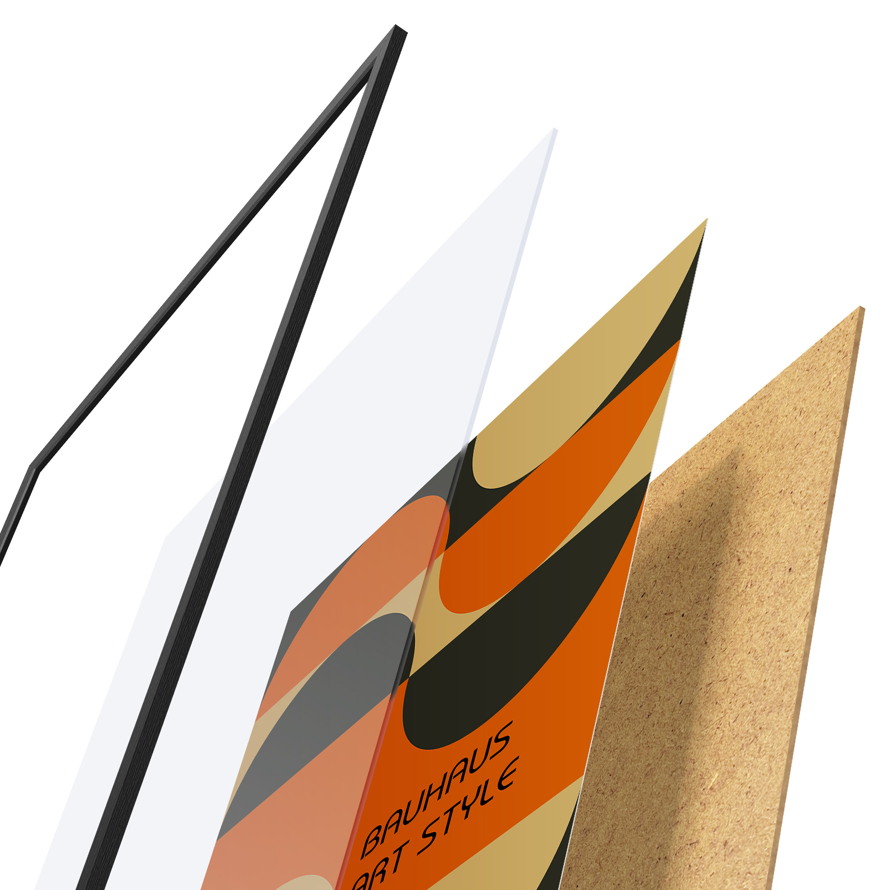 Plakatą sudaro rėmas, pleksiklas, atspausdintas vaizdas ir medžio drožlių plokštės pagrindas. Plakatą galima iš karto pakabinti ant sienos dėl kitoje pusėje esančių laikiklių.