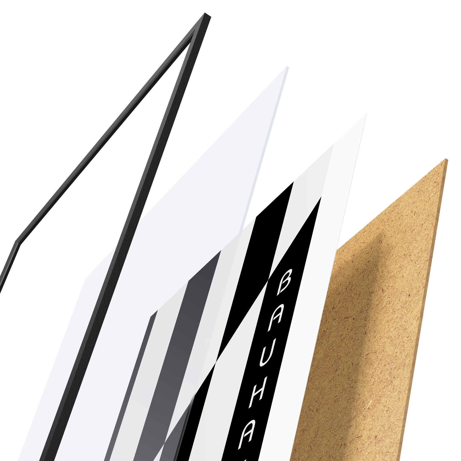 Plakatą sudaro rėmas, pleksiklas, atspausdintas vaizdas ir medžio drožlių plokštės pagrindas. Plakatą galima iš karto pakabinti ant sienos dėl kitoje pusėje esančių laikiklių.