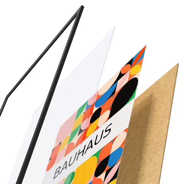 Plakatą sudaro rėmas, pleksiklas, atspausdintas vaizdas ir medžio drožlių plokštės pagrindas. Plakatą galima iš karto pakabinti ant sienos dėl kitoje pusėje esančių laikiklių.