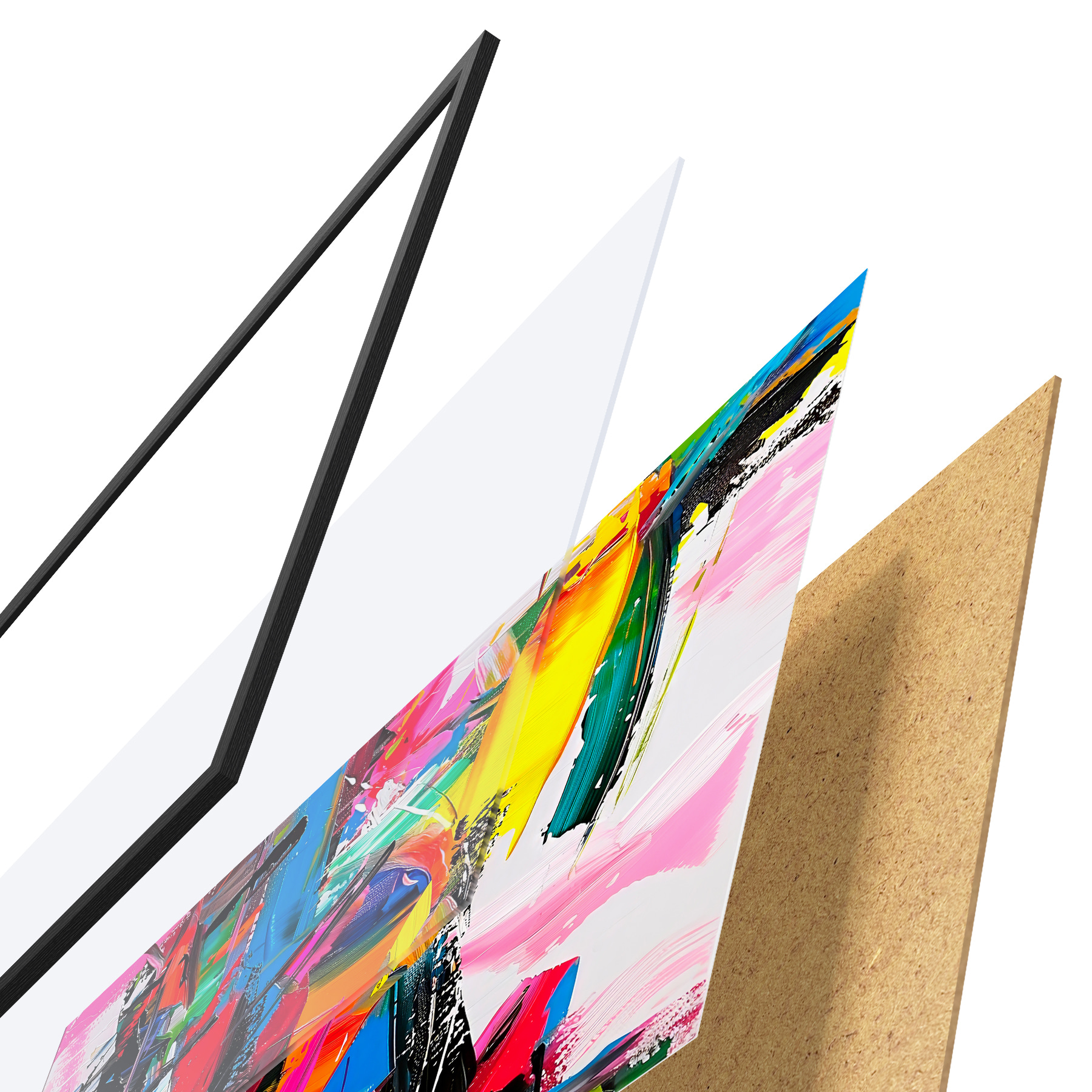 Plakatą sudaro rėmas, pleksiklas, atspausdintas vaizdas ir medžio drožlių plokštės pagrindas. Plakatą galima iš karto pakabinti ant sienos dėl kitoje pusėje esančių laikiklių.