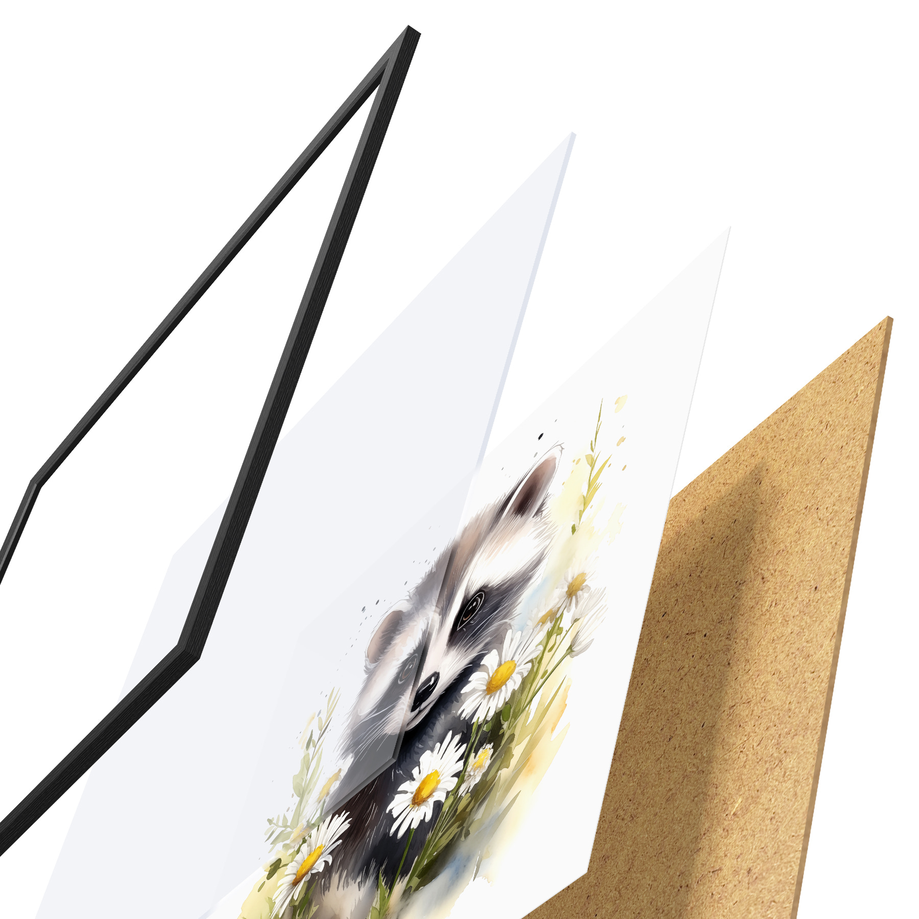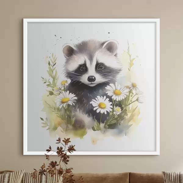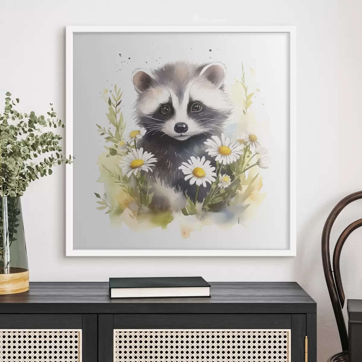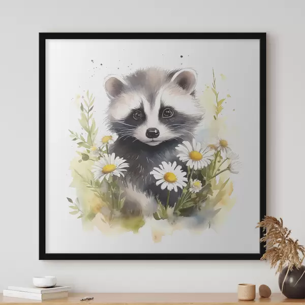 Plakatas Mažasis meškėnas, sėdintis ant margučio vaikiška akvarelinė iliustracija f39336