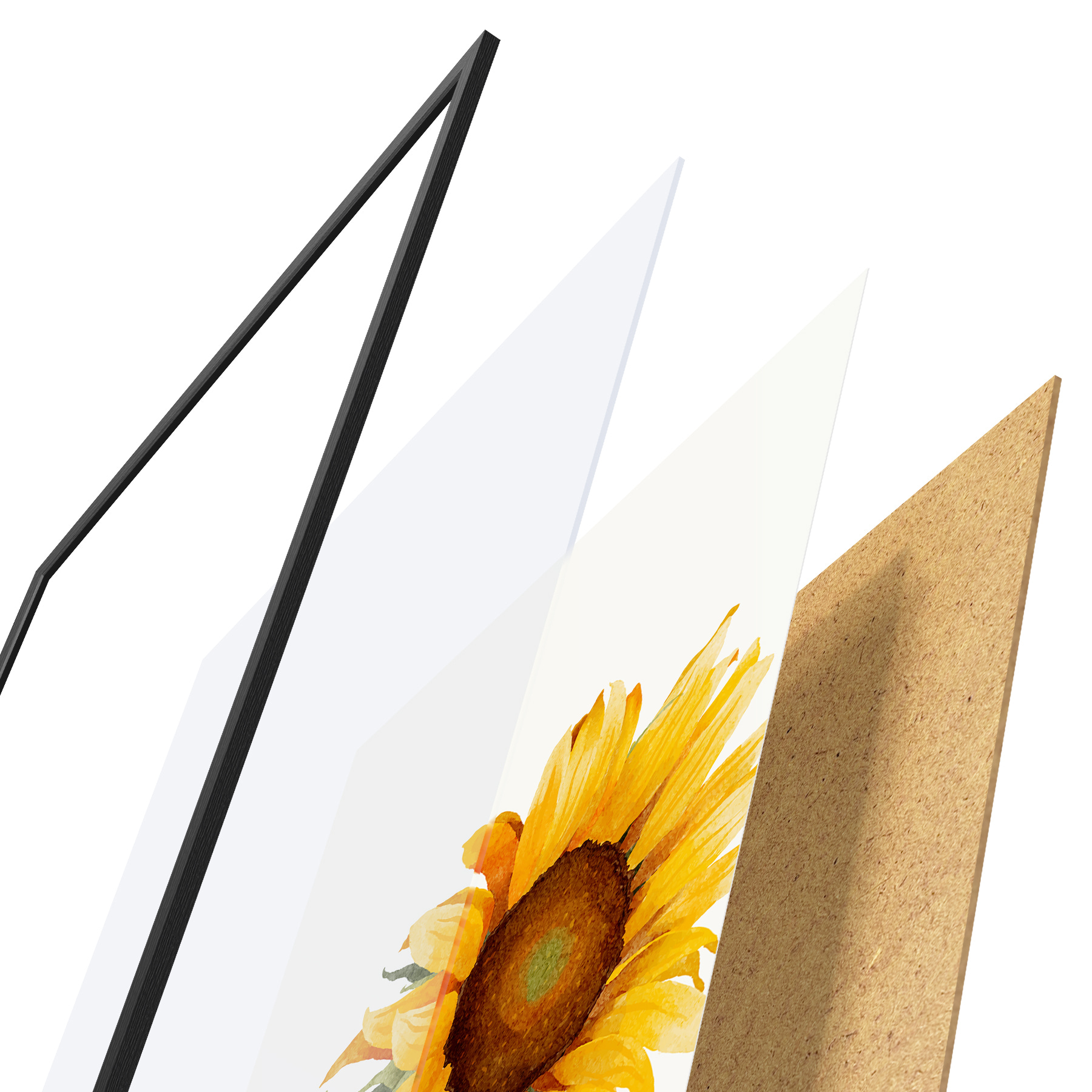 Plakatą sudaro rėmas, pleksiklas, atspausdintas vaizdas ir medžio drožlių plokštės pagrindas. Plakatą galima iš karto pakabinti ant sienos dėl kitoje pusėje esančių laikiklių.