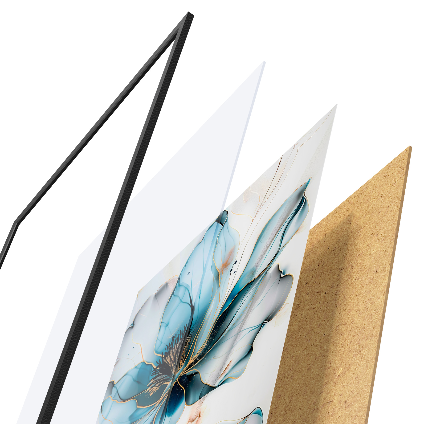 Plakatą sudaro rėmas, pleksiklas, atspausdintas vaizdas ir medžio drožlių plokštės pagrindas. Plakatą galima iš karto pakabinti ant sienos dėl kitoje pusėje esančių laikiklių.