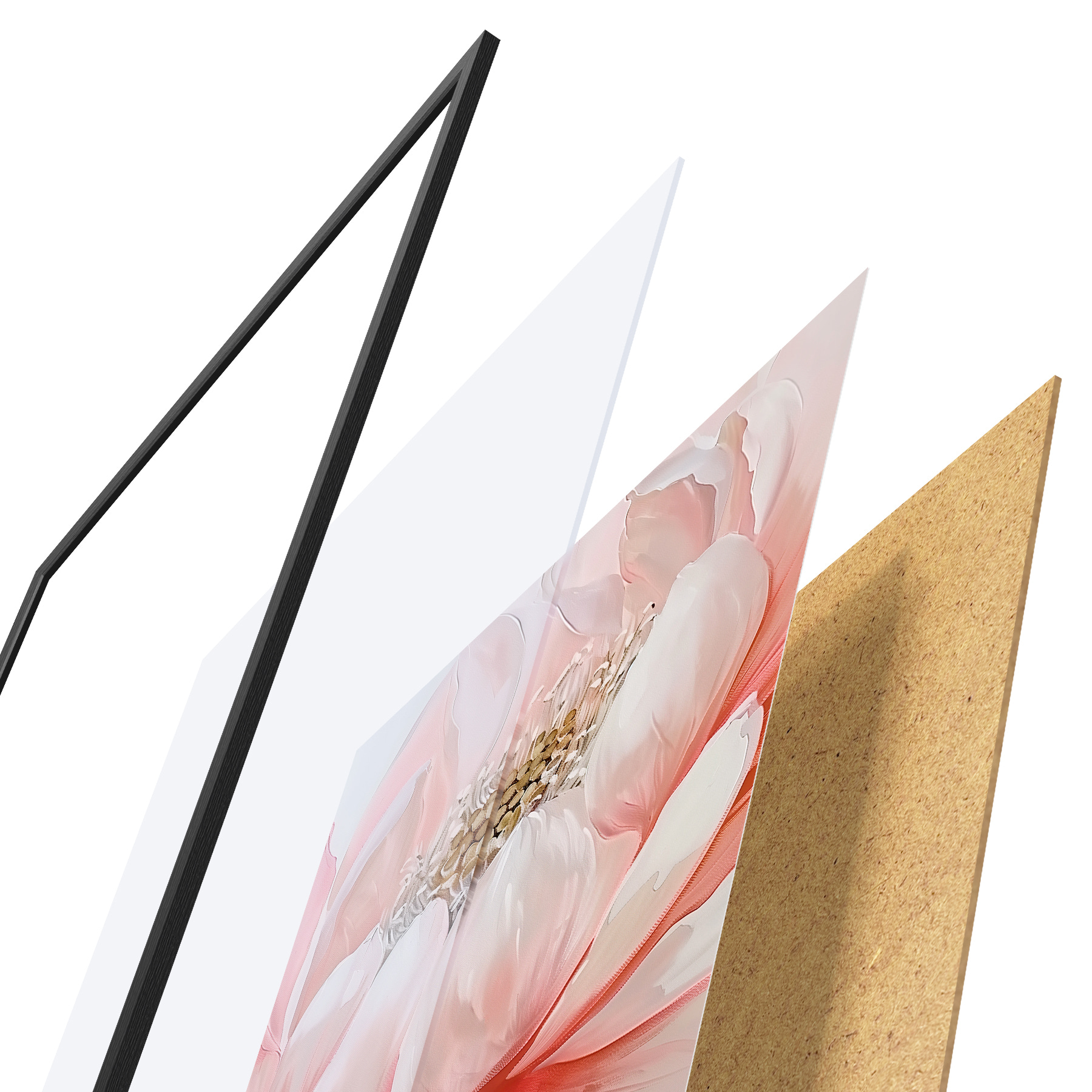 Plakatą sudaro rėmas, pleksiklas, atspausdintas vaizdas ir medžio drožlių plokštės pagrindas. Plakatą galima iš karto pakabinti ant sienos dėl kitoje pusėje esančių laikiklių.